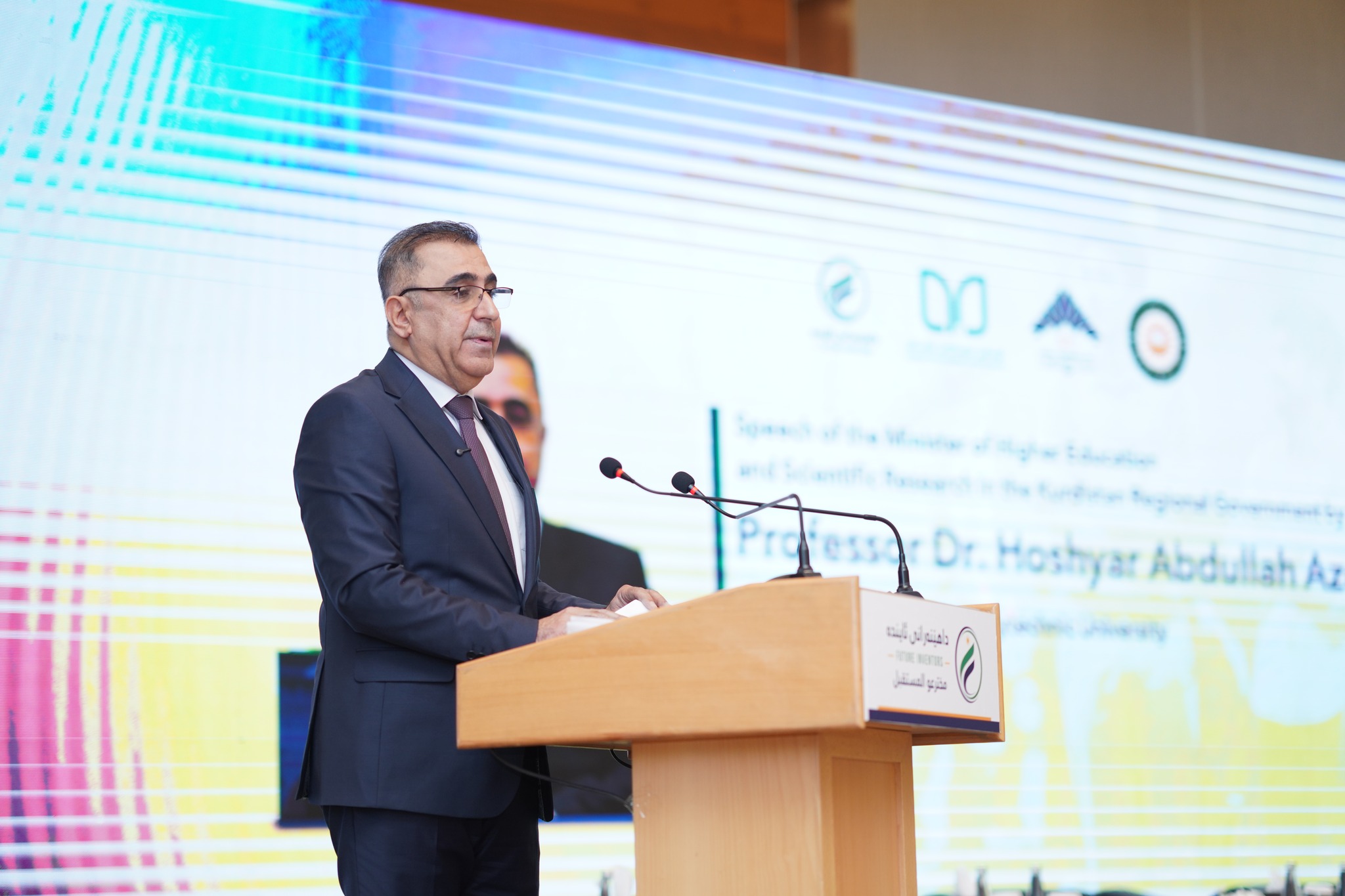لە ئیڤێنتی داهێنەرانی ئایندە وتاری بەڕێز دکتۆر ئارام محەمەد قادر وەزیری خوێندنی باڵا و توێژینەوەی زانستی لەلایەن پ.د.هۆشیار عەبدوڵڵا عەزیز (سەرۆکی زانکۆی پۆلیتەکنیکی سلێمانی) خوێندرایەوە، بەخێرهاتنی باڵیۆزانی عێراق و پارێزگاری سلێمانی و سەرۆکی زانکۆکان و ئەندامانی پەرلەمانی عێراق و کوردستان و نوێنەرانی کۆمپانیاکانی کرد.
