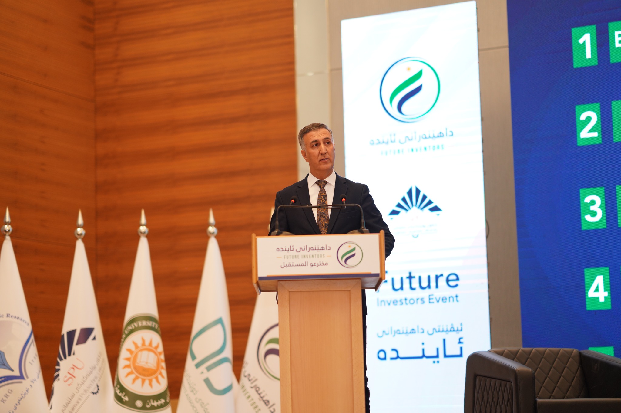لەو ئیڤێنتەدا بەڕێز پ.ی.د بەختیار عەبید شەریف (یاریدەدەری سەرۆکی زانکۆی پۆلیتەکنیکی سلێمانی بۆ کاروباری خوێندکاران)، وتەی دەستەی ڕێکخەری ئیڤێنتی داهێنەرانی ئاییندەی خوێندەوە.