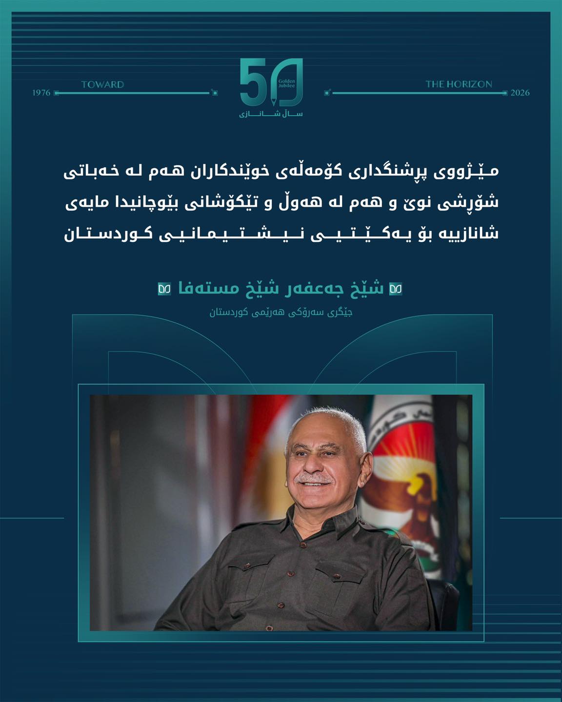 لە یادی پەنجا ساڵەی دامەزراندنی خەباتی پڕ لە شانازی و سەروەریی کۆمەڵەی خوێندکارانی کوردستاندا، گەرمترین پیرۆزبایی ئاراستەی کۆمەڵەی خوێندکاران و گشت زانستخوازانی کوردستان دەکەم، هیوای سەرکەوتنیان بۆ دەخوازم.