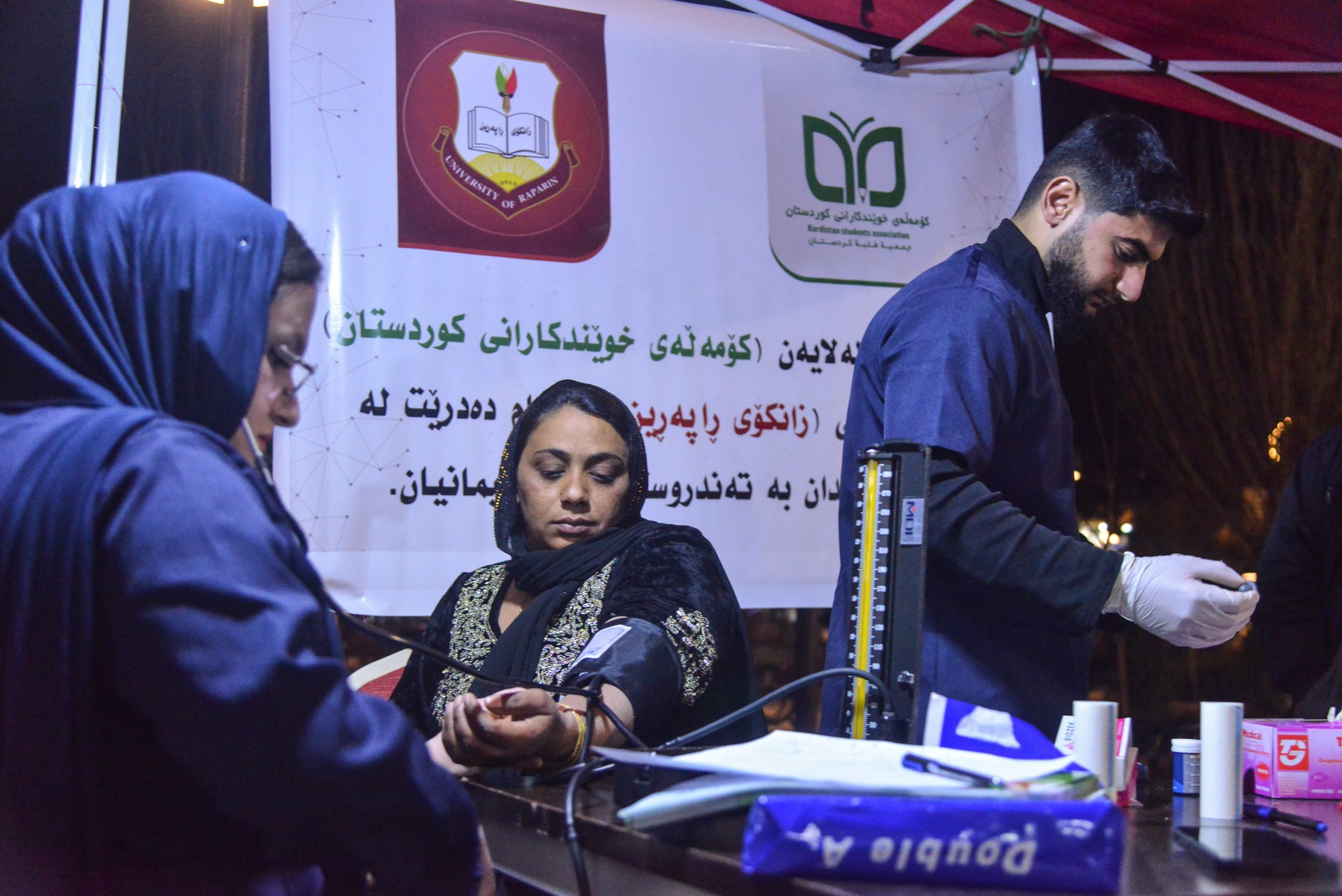 کۆمەڵەی خوێندکارانی كوردستان لە یادی راپەڕینە شکۆدارەکەی کورد و لە ڕۆژانی مانگی رەمەزانی پیرۆزدا، لەلایەن خوێندکارانی كۆلێجی پەرستاری و زانستی زانكۆی ڕاپەڕینەوە رێنمایی تەندروستی و خزمەتگوزاریی پزیشکی پێشکەشی هاونیشتمانییانی رانیە، قەڵادزێ و حاجیاوا دەکەن.