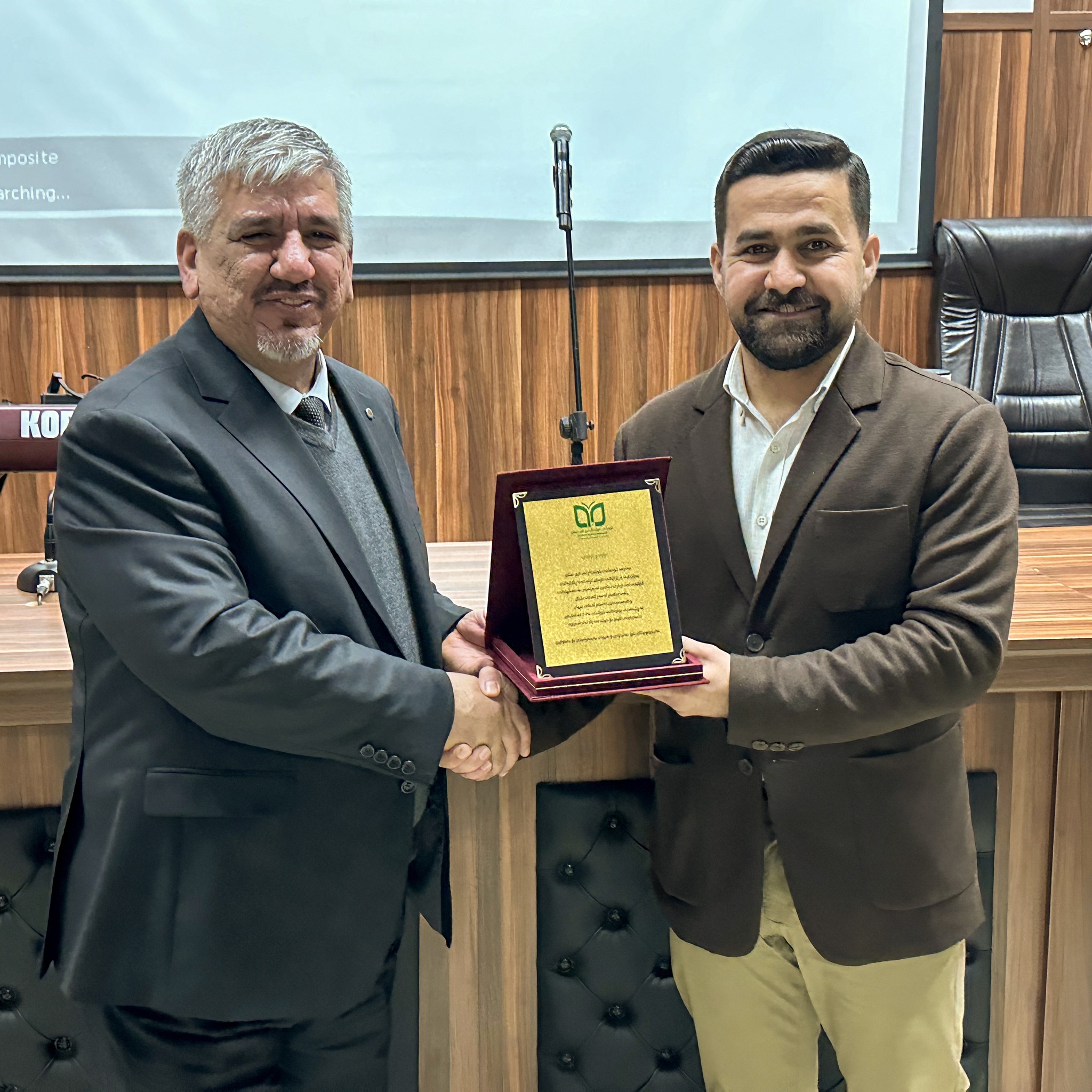 لەو ڕێوڕەسمەدا د.کۆسار محەمەد، سەرۆکی زانکۆی سلێمانی و یاریدەدەرانی سەرۆکی زانکۆ ئامادەی پێشکەشکردنی خەڵاتەکە بوون.