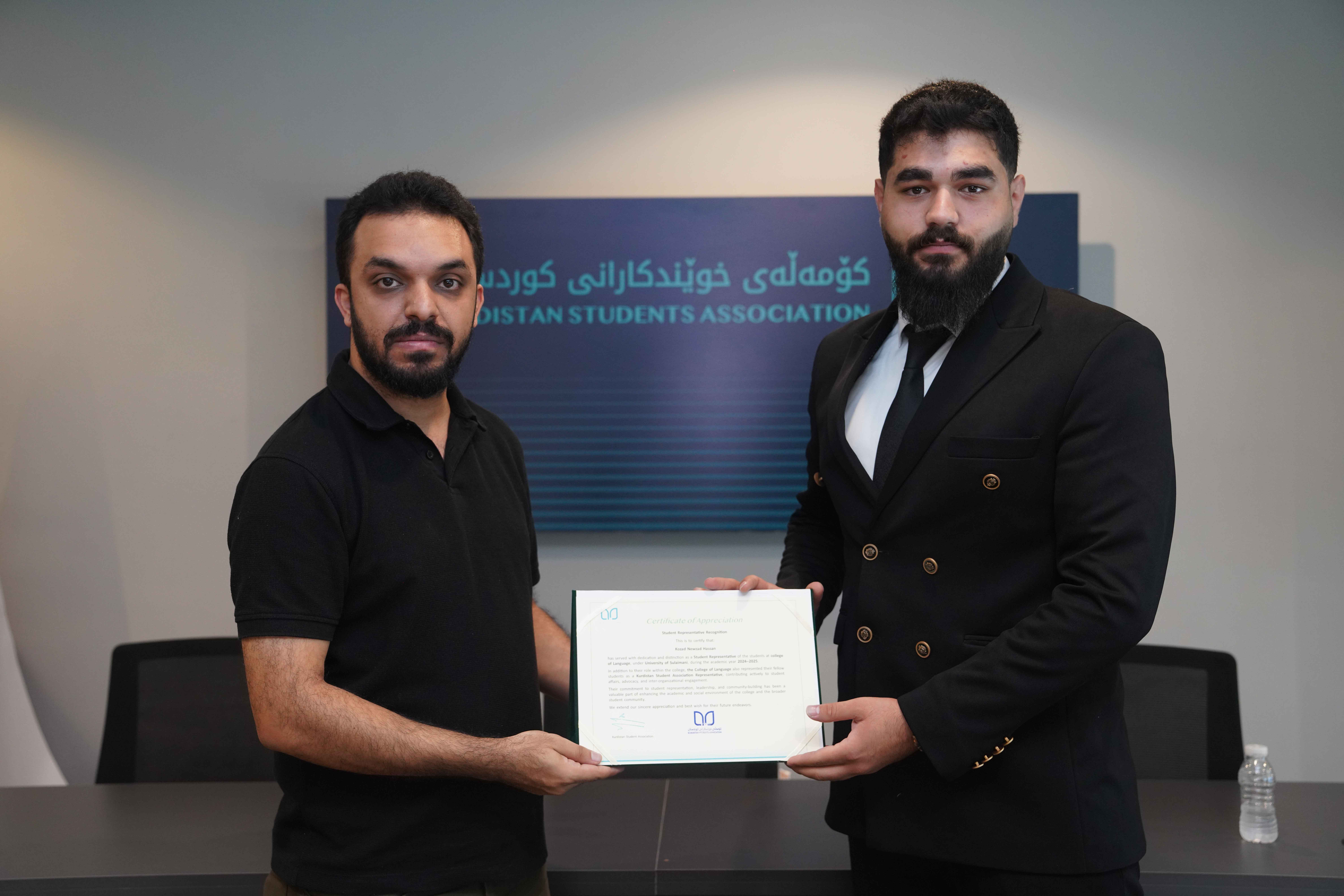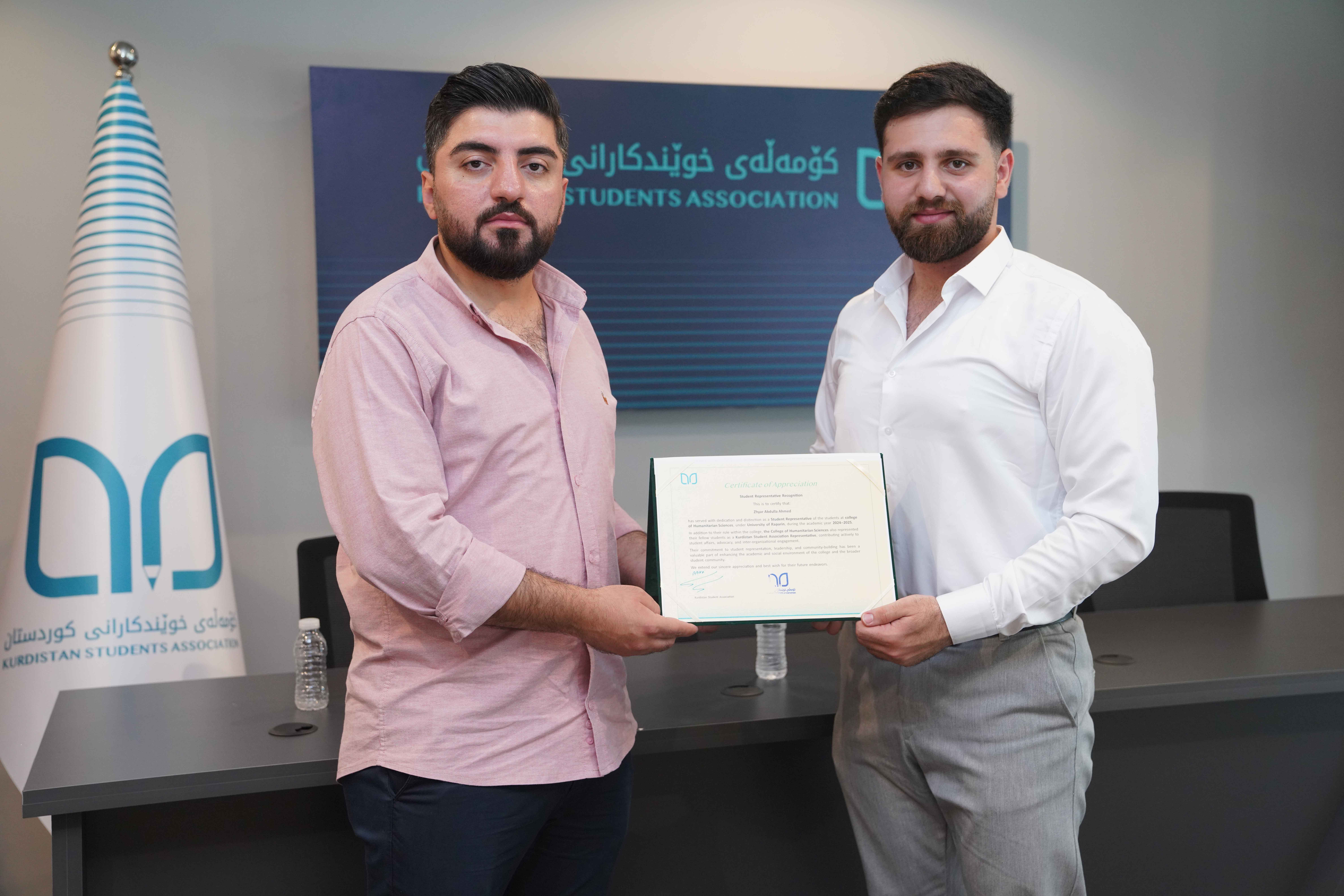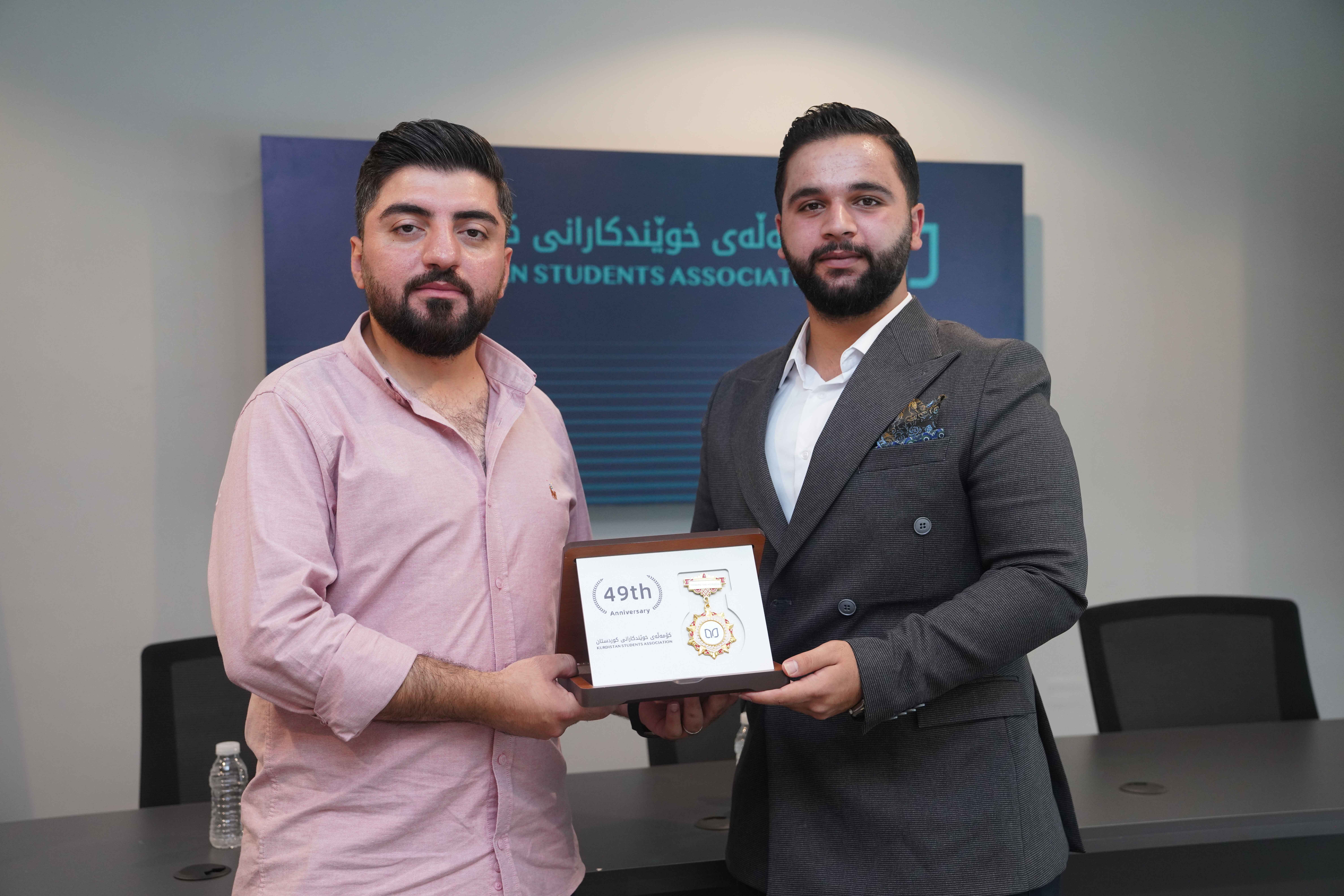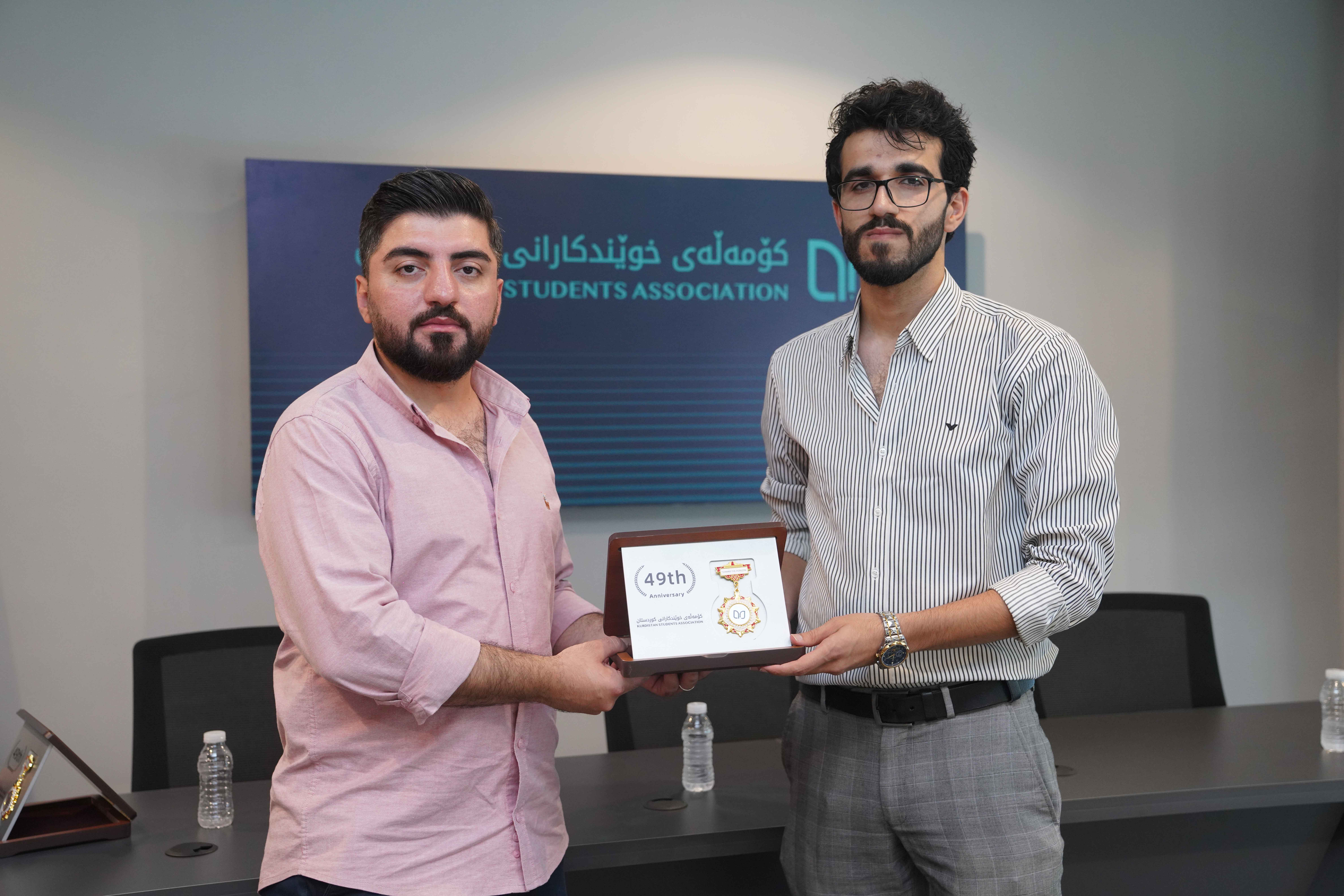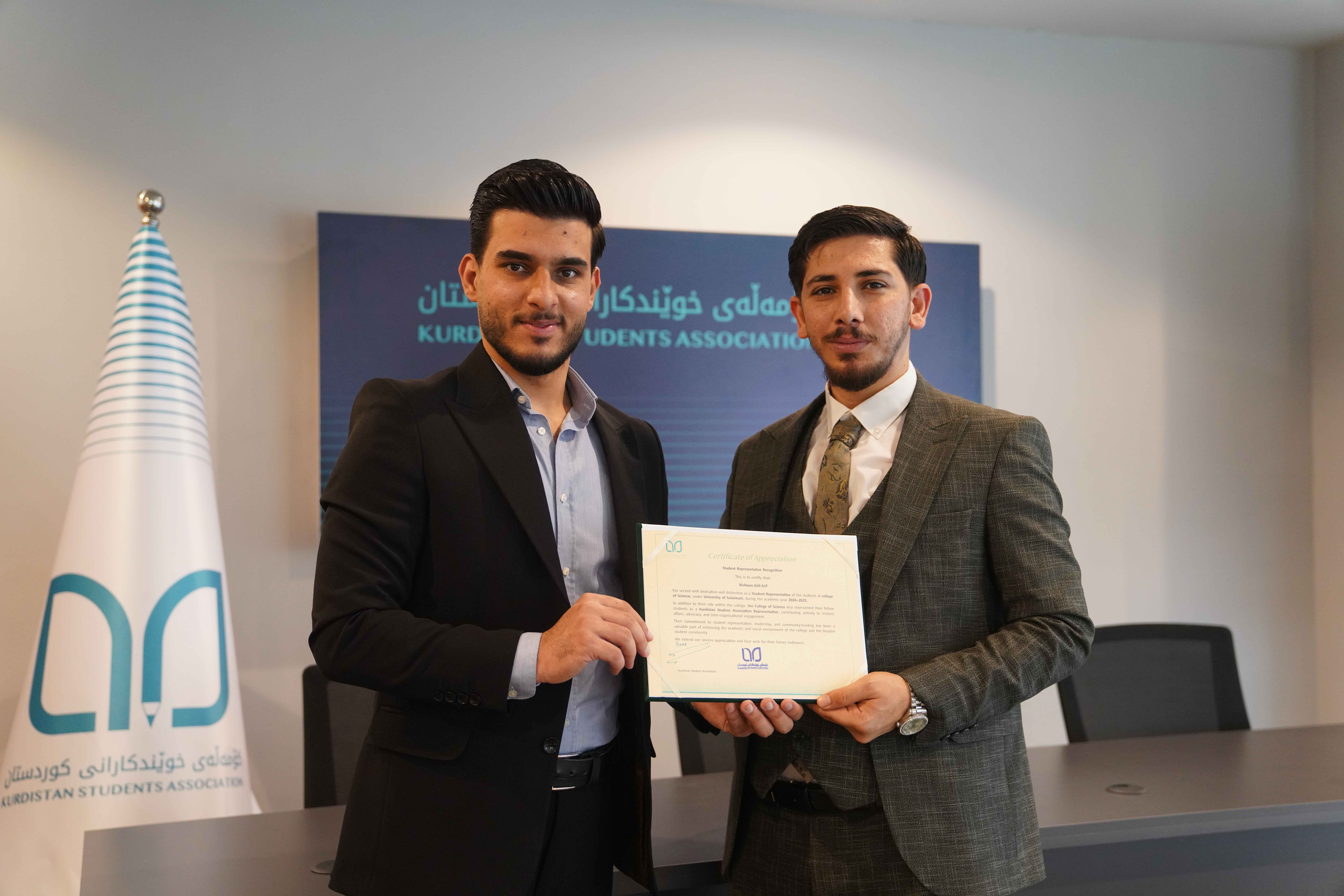 نوێنەرانی گشتی کۆلێجی بەشێک لە زانکۆکان، لە بینای کۆمەڵەی خوێندکارانی کوردستان سوپاس و پێزانینیان ئاڕاستە کرا لە بەرامبەر خزمەت و بەدەنگەوە هاتنی كاروبارەكانی خوێندكاران لە زانكۆكانی خۆیاندا و ئەنجامدانی كاروچالاكییەكان لە ساڵی ڕابردوودا، دوای کۆبوونەوە و گوێگرتن لە داواکانیان، خەڵاتکران.