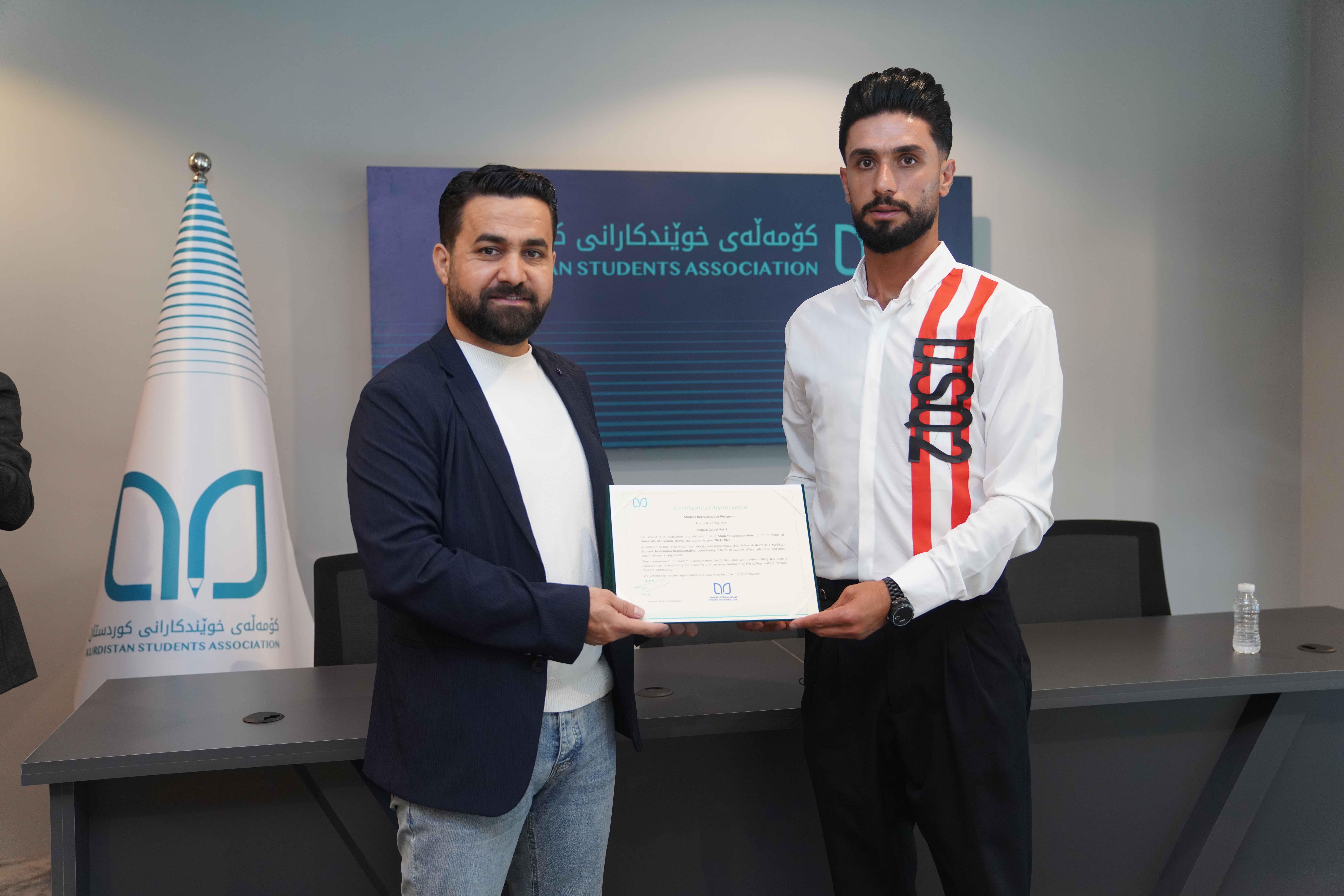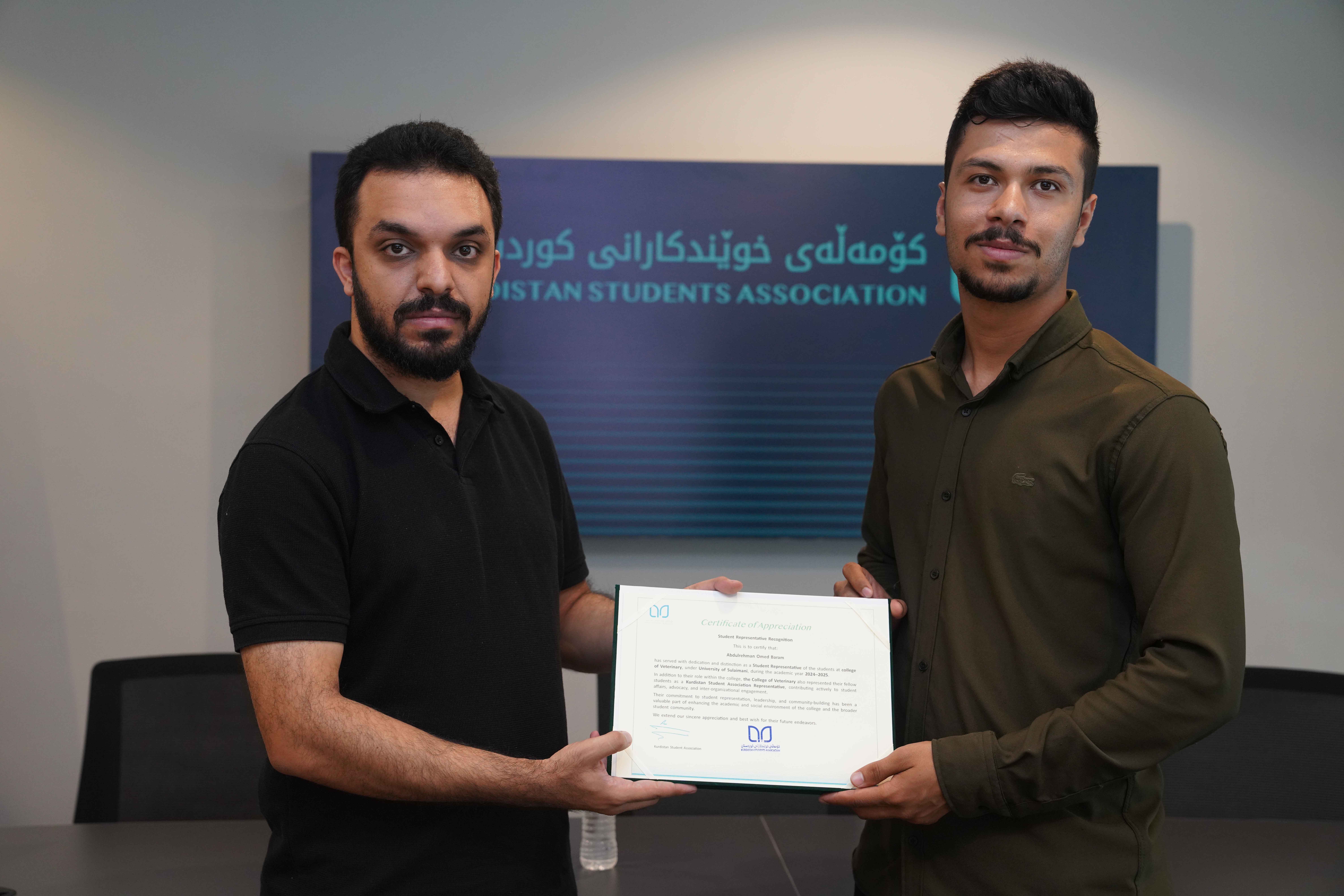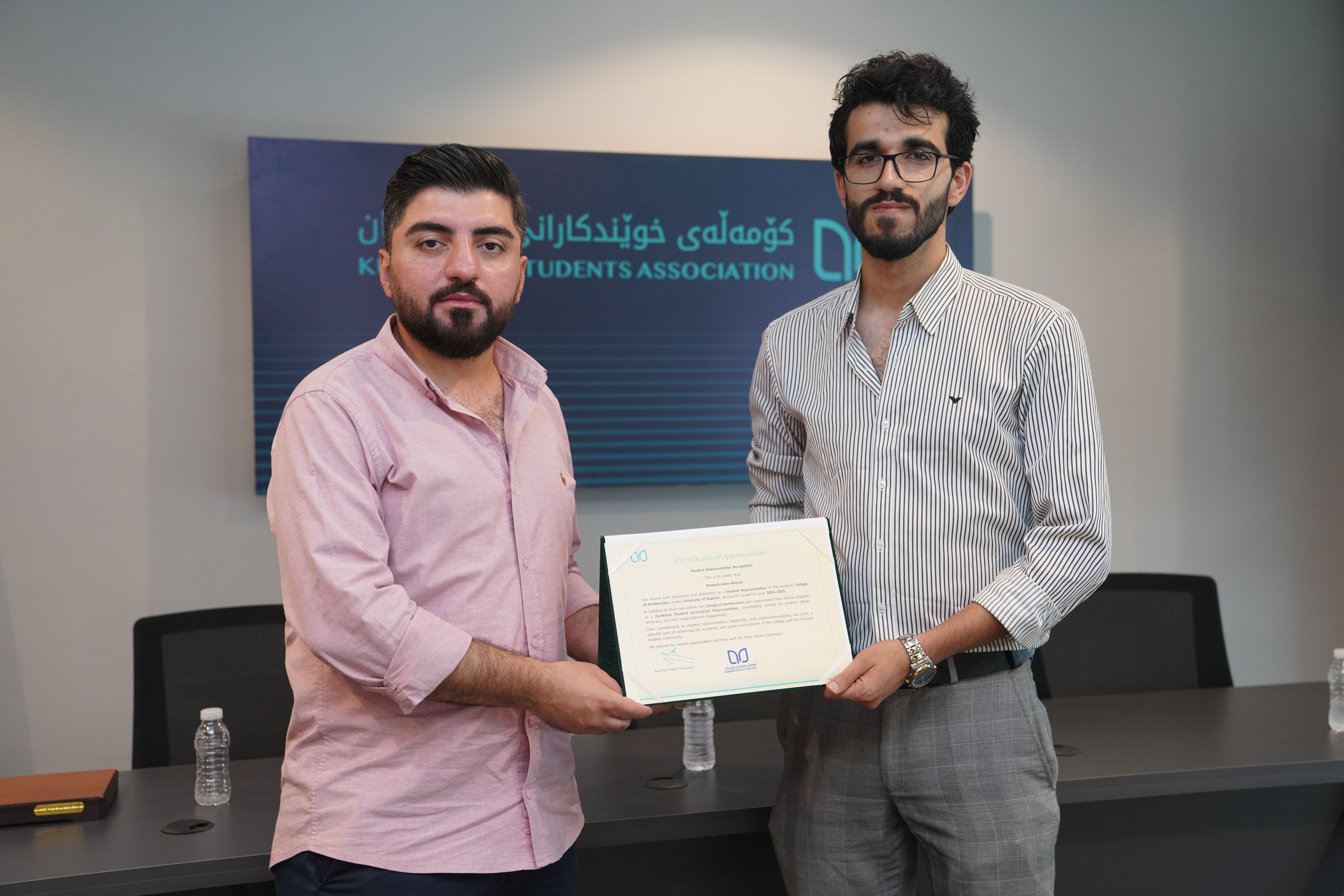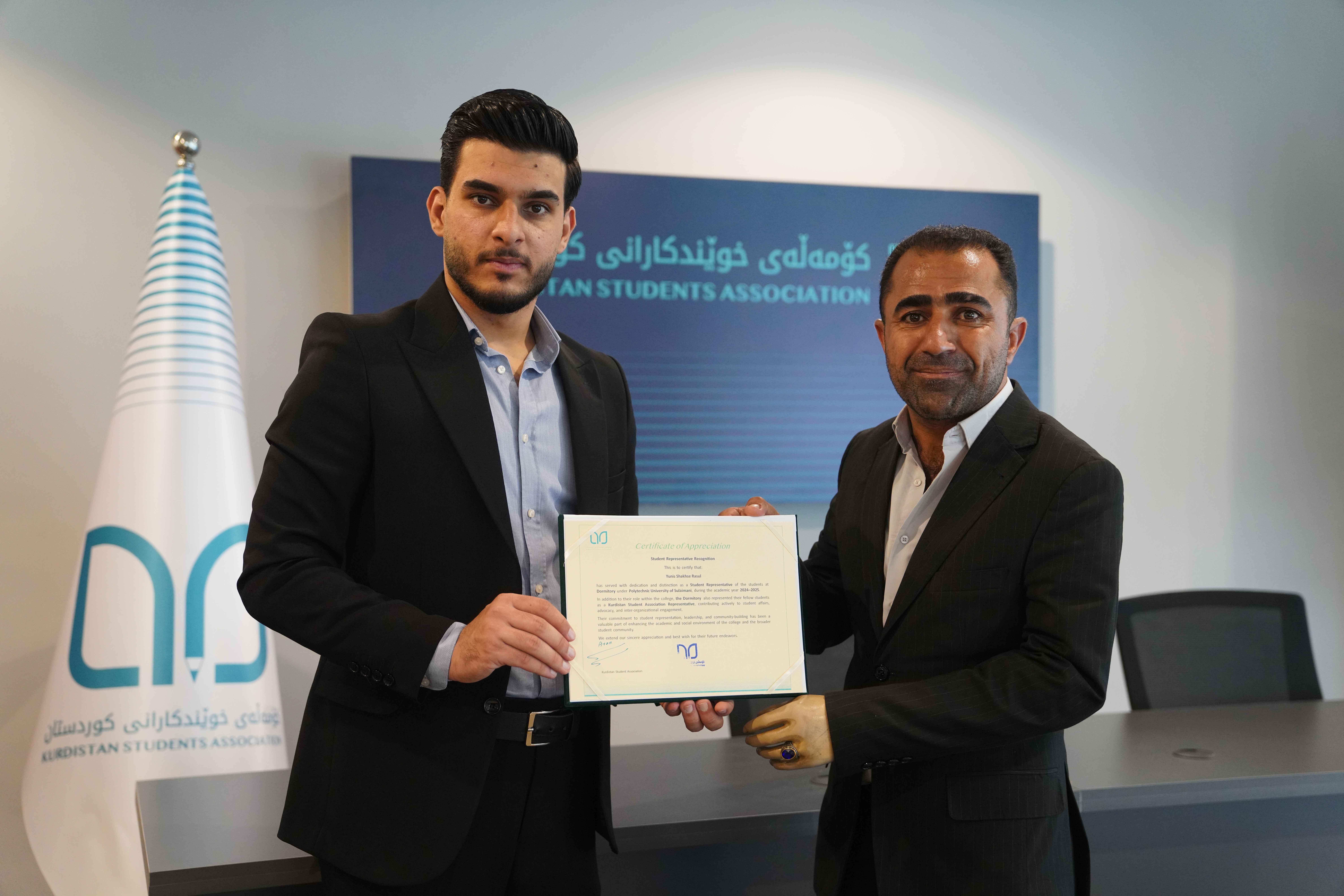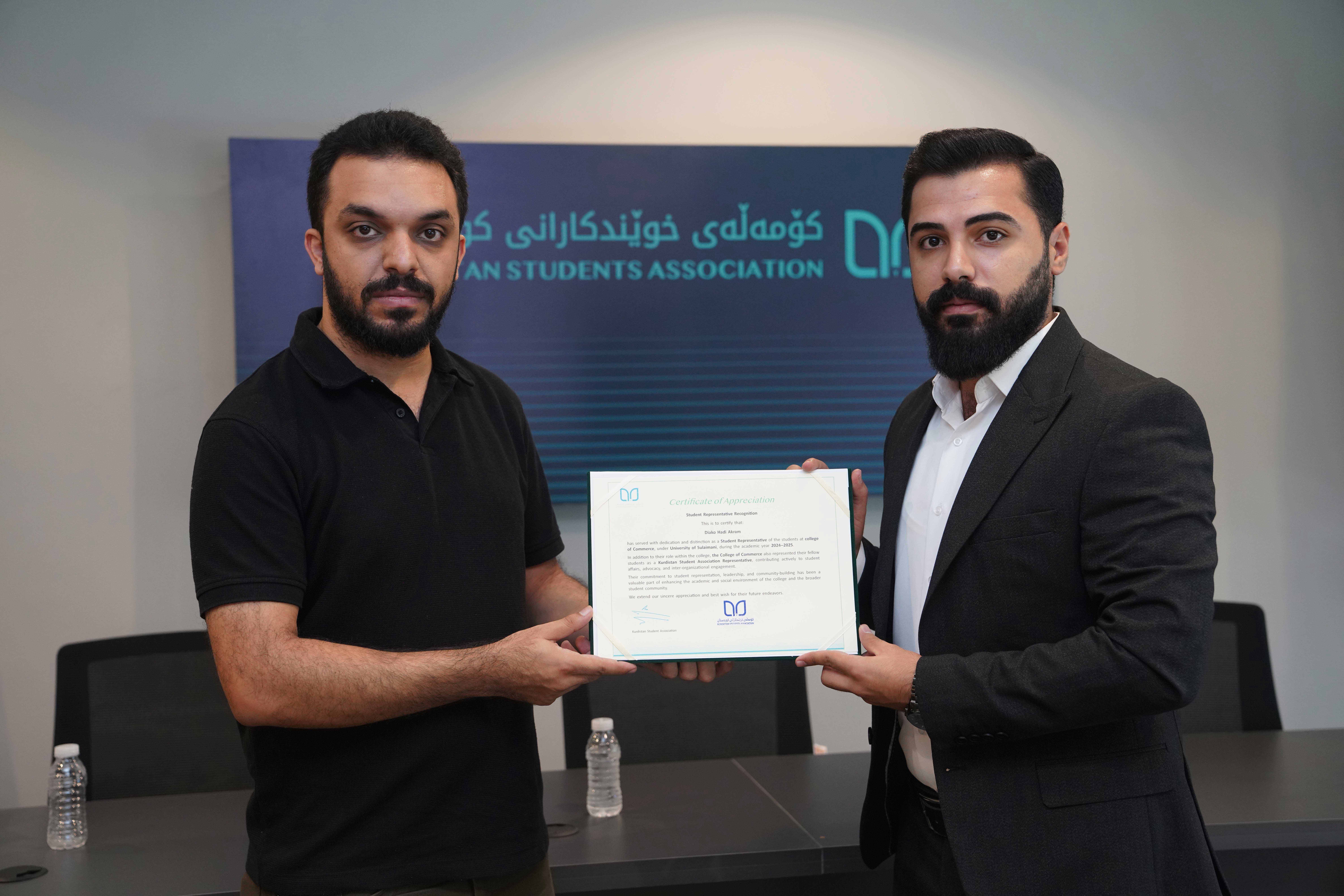 نوێنەرانی گشتی کۆلێجی بەشێک لە زانکۆکان، لە بینای کۆمەڵەی خوێندکارانی کوردستان سوپاس و پێزانینیان ئاڕاستە کرا لە بەرامبەر خزمەت و بەدەنگەوە هاتنی كاروبارەكانی خوێندكاران لە زانكۆكانی خۆیاندا و ئەنجامدانی كاروچالاكییەكان لە ساڵی ڕابردوودا، دوای کۆبوونەوە و گوێگرتن لە داواکانیان، خەڵاتکران.