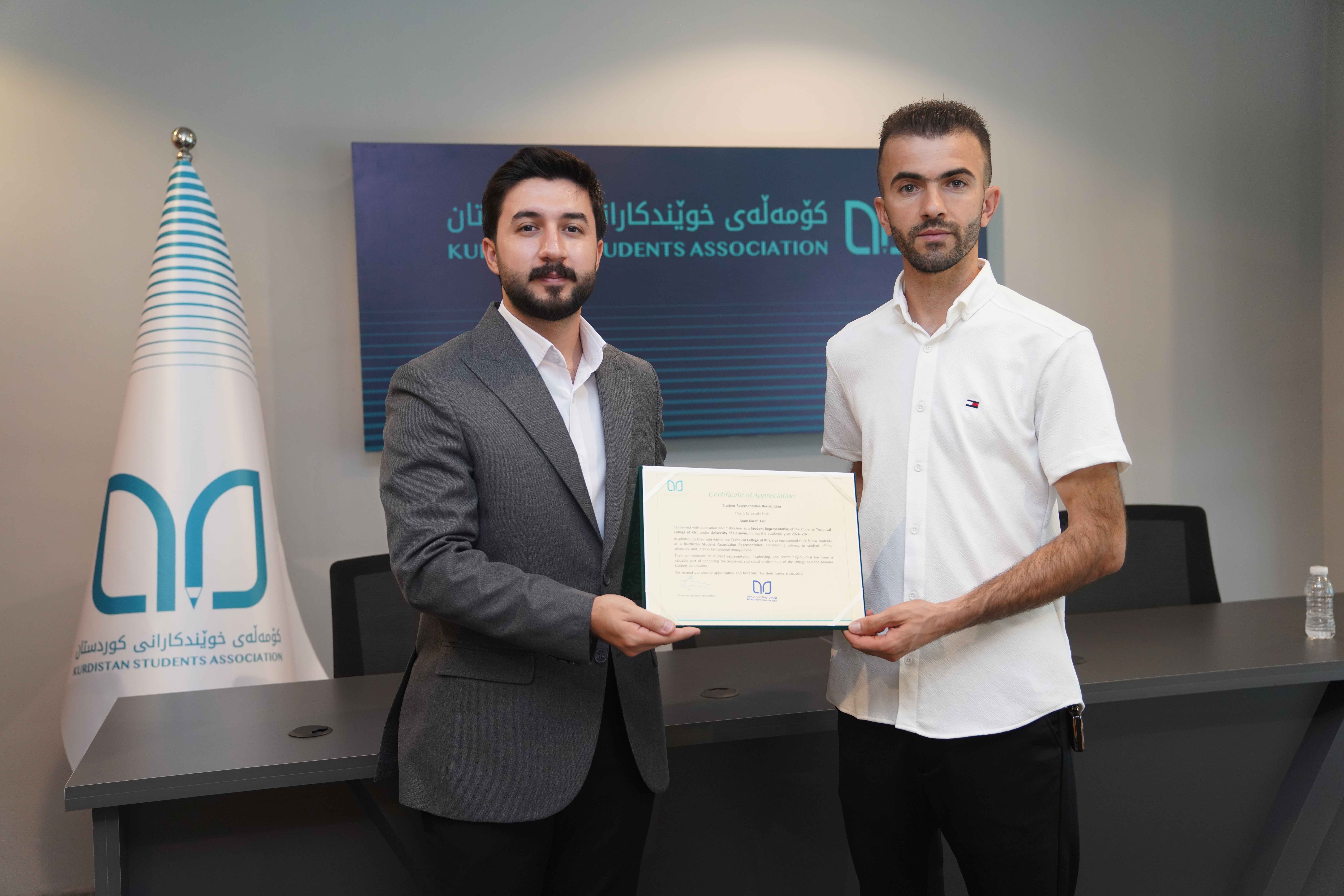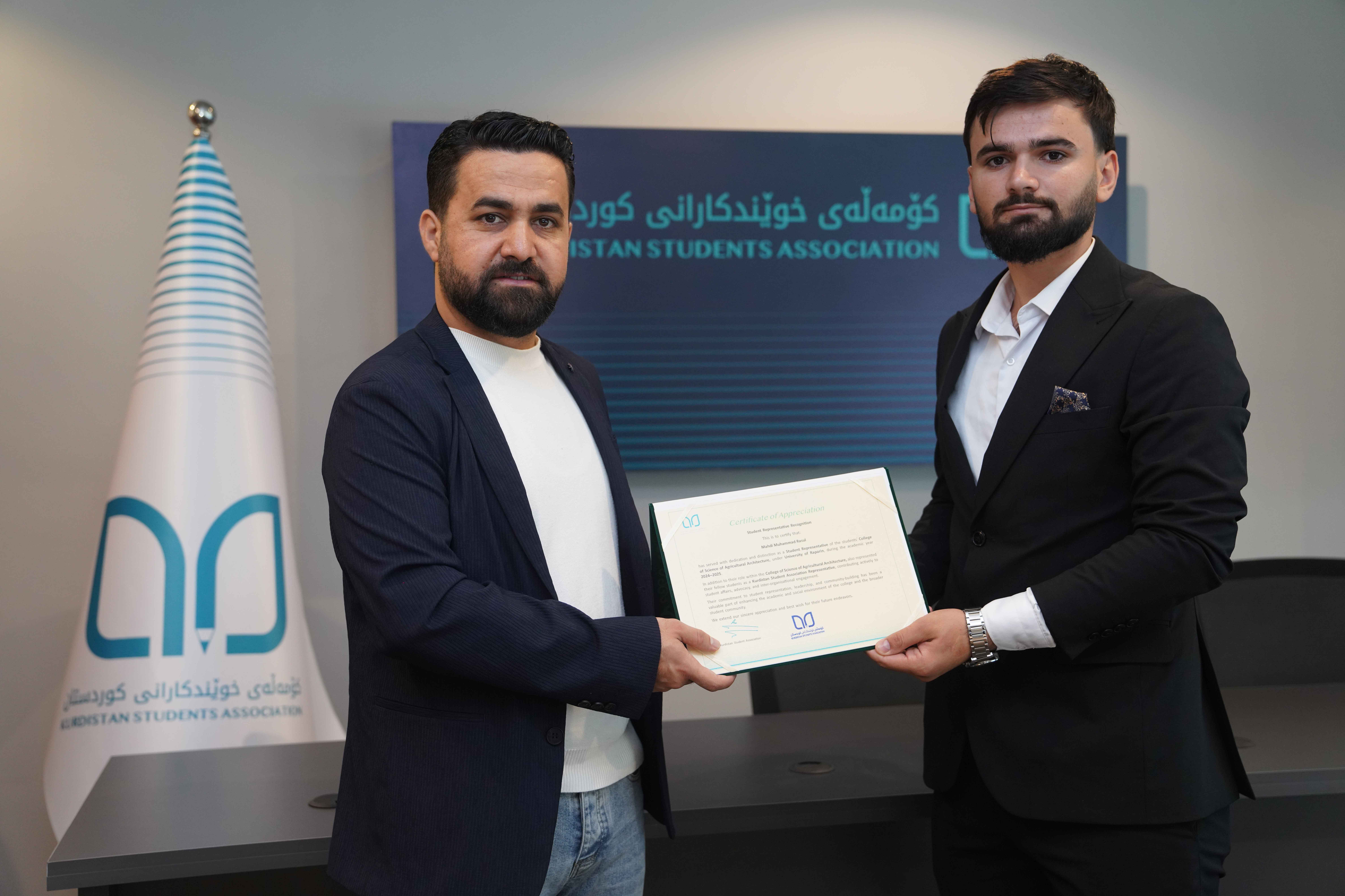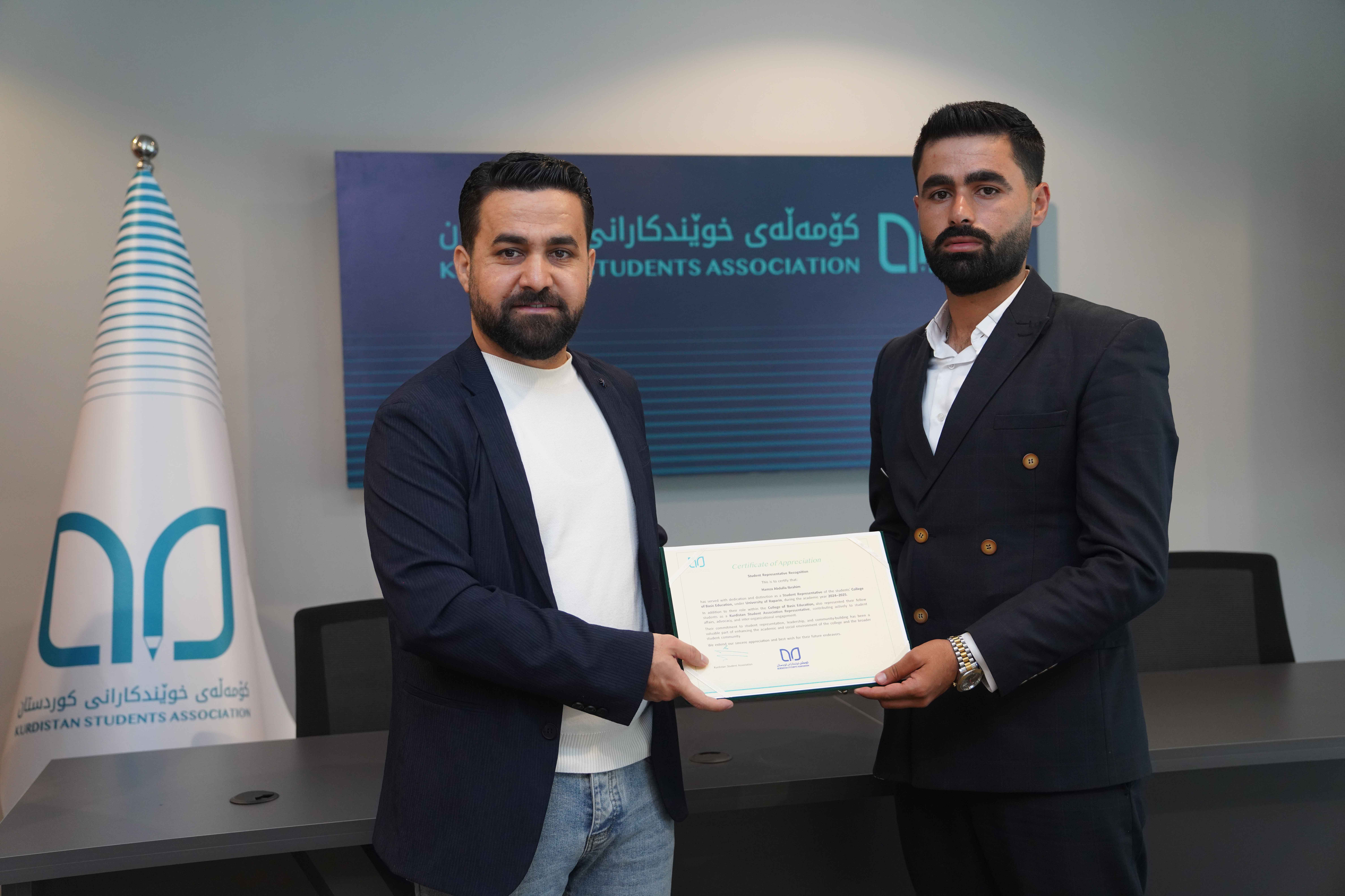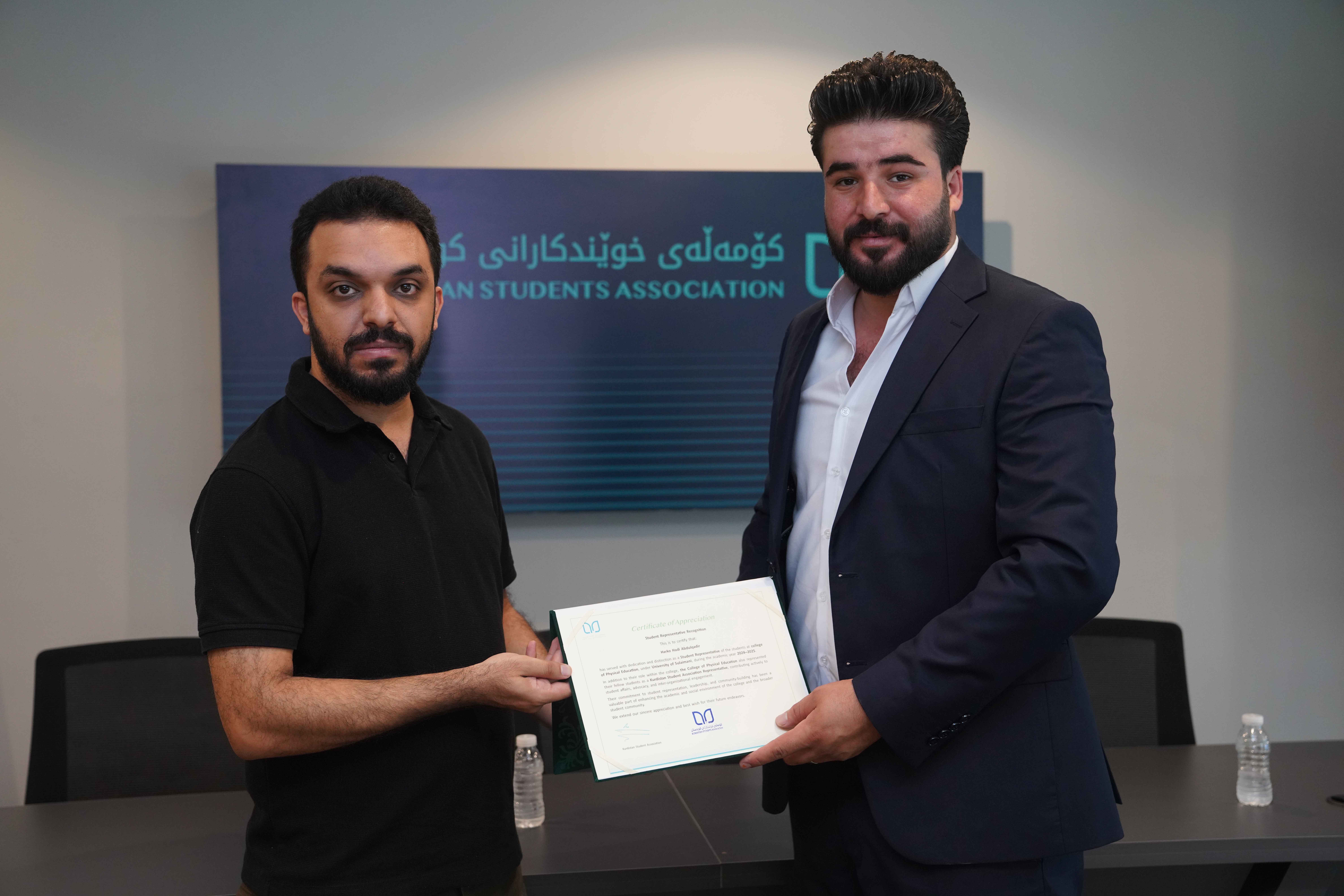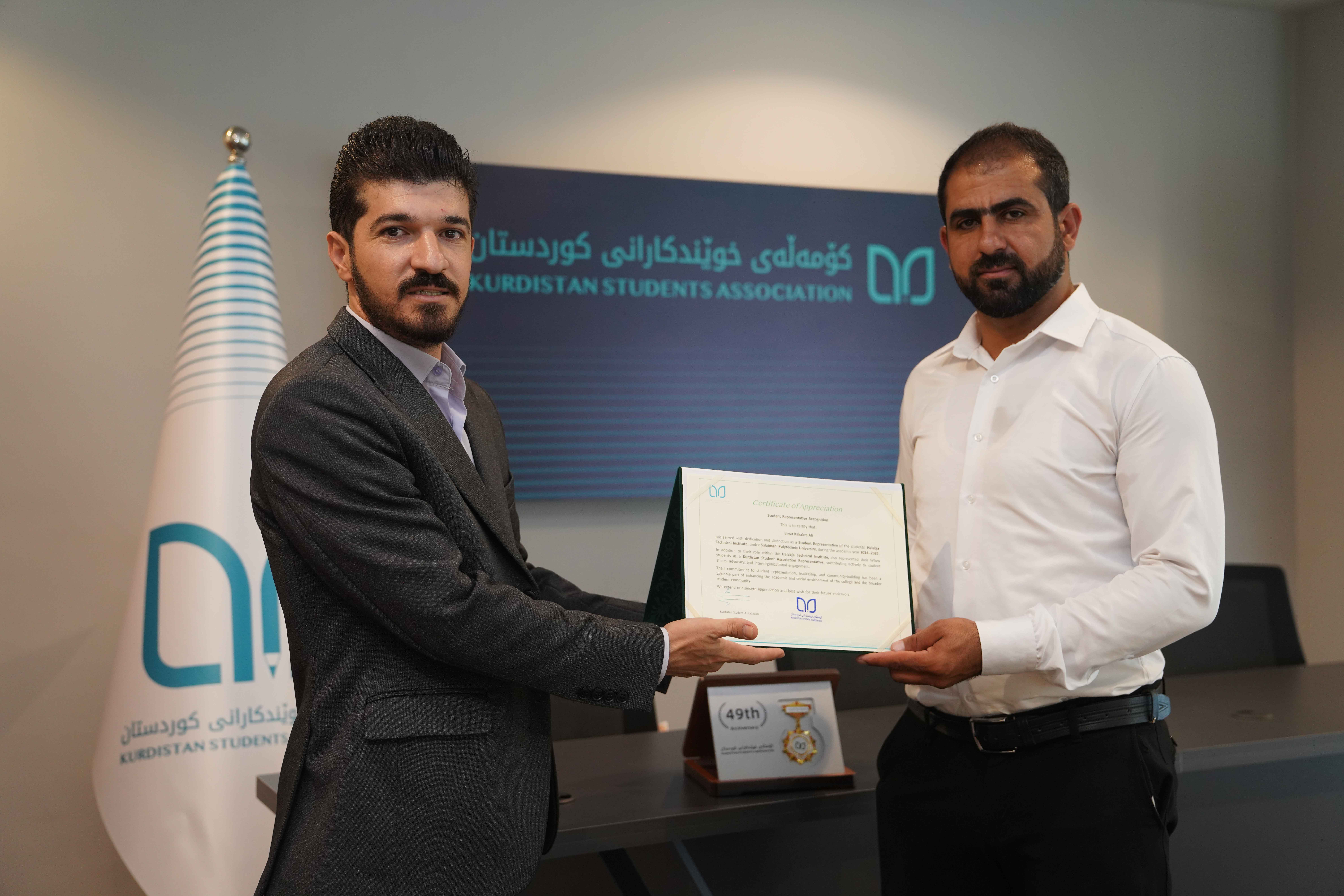نوێنەرانی گشتی کۆلێجی بەشێک لە زانکۆکان، لە بینای کۆمەڵەی خوێندکارانی کوردستان سوپاس و پێزانینیان ئاڕاستە کرا لە بەرامبەر خزمەت و بەدەنگەوە هاتنی كاروبارەكانی خوێندكاران لە زانكۆكانی خۆیاندا و ئەنجامدانی كاروچالاكییەكان لە ساڵی ڕابردوودا، دوای کۆبوونەوە و گوێگرتن لە داواکانیان، خەڵاتکران.