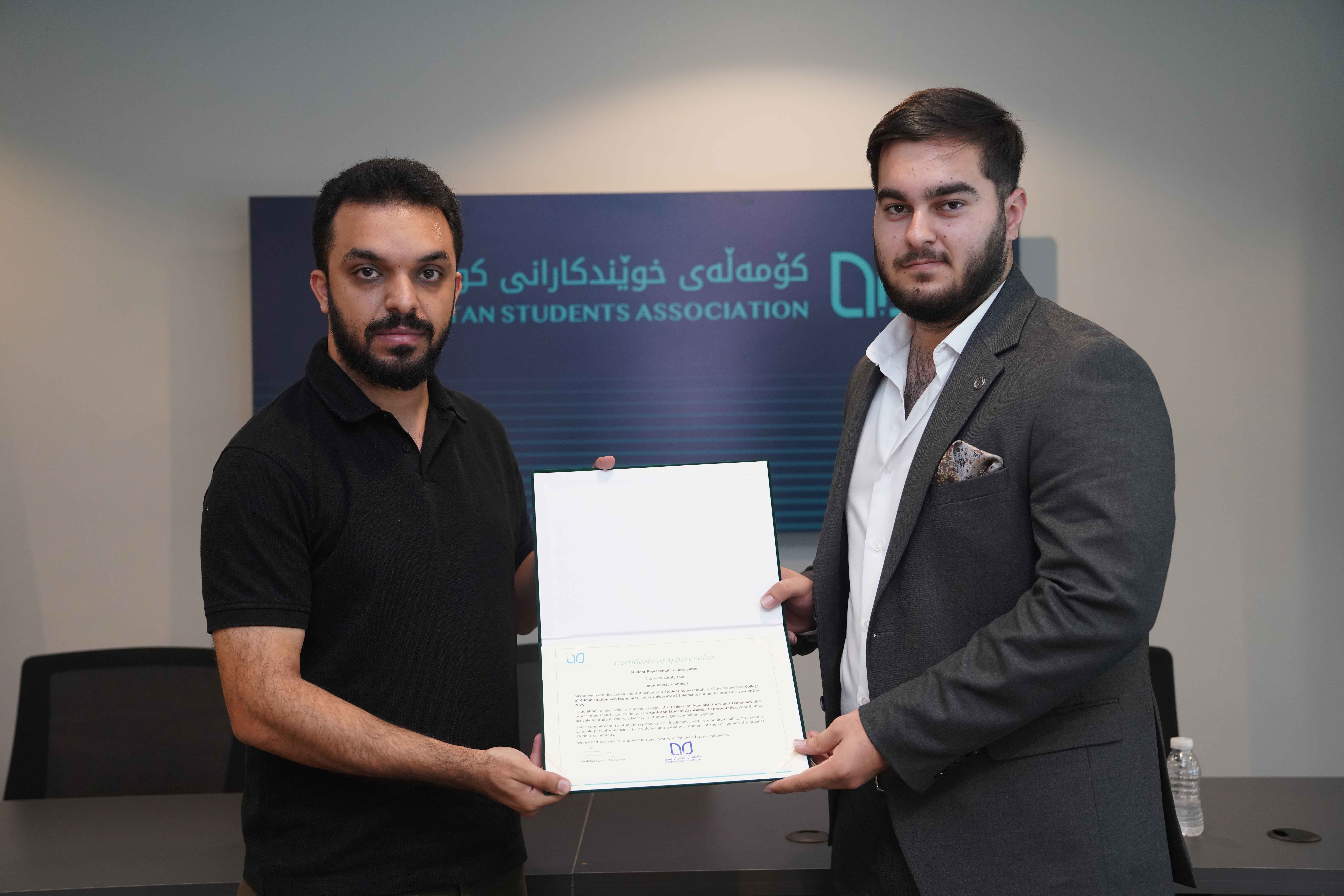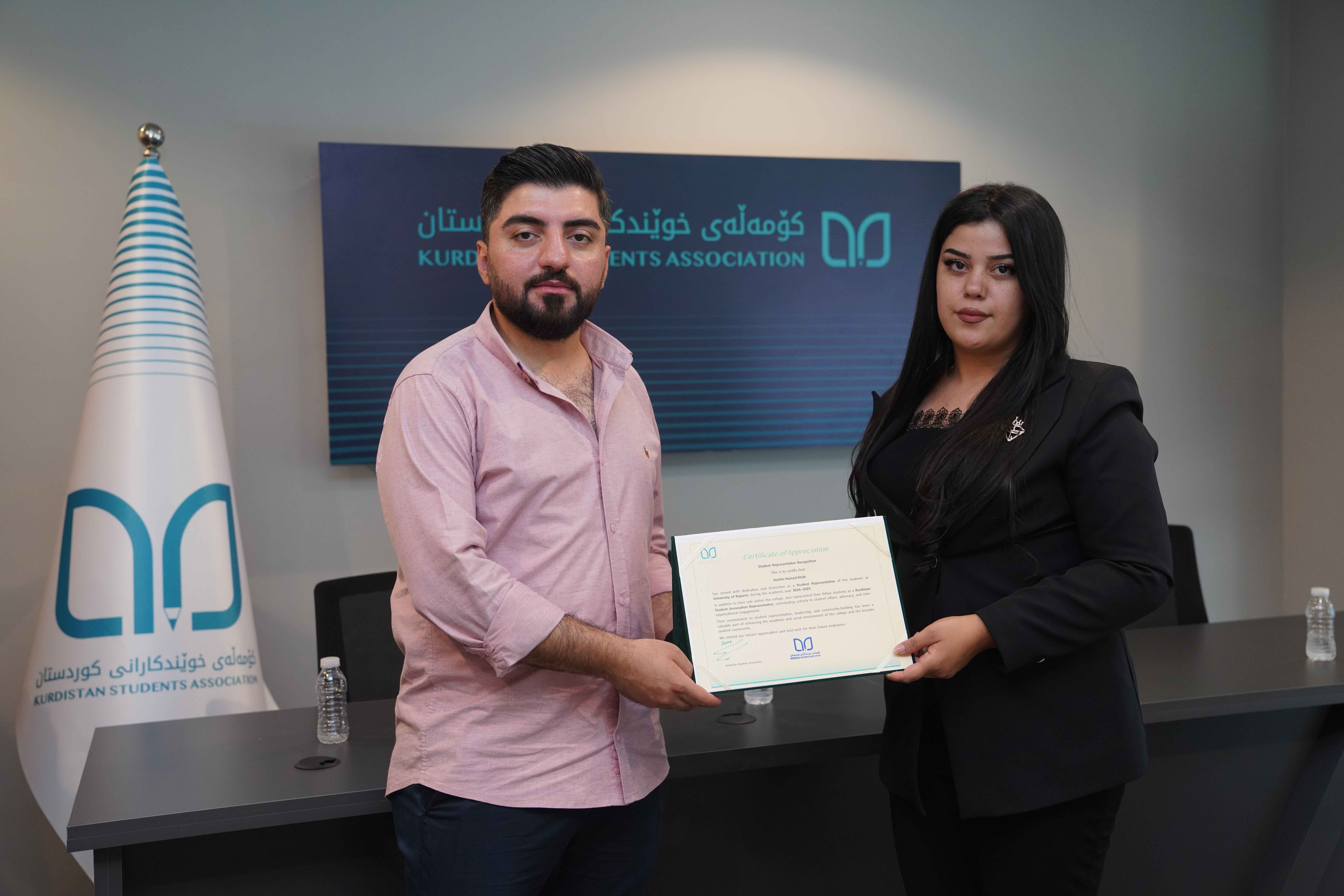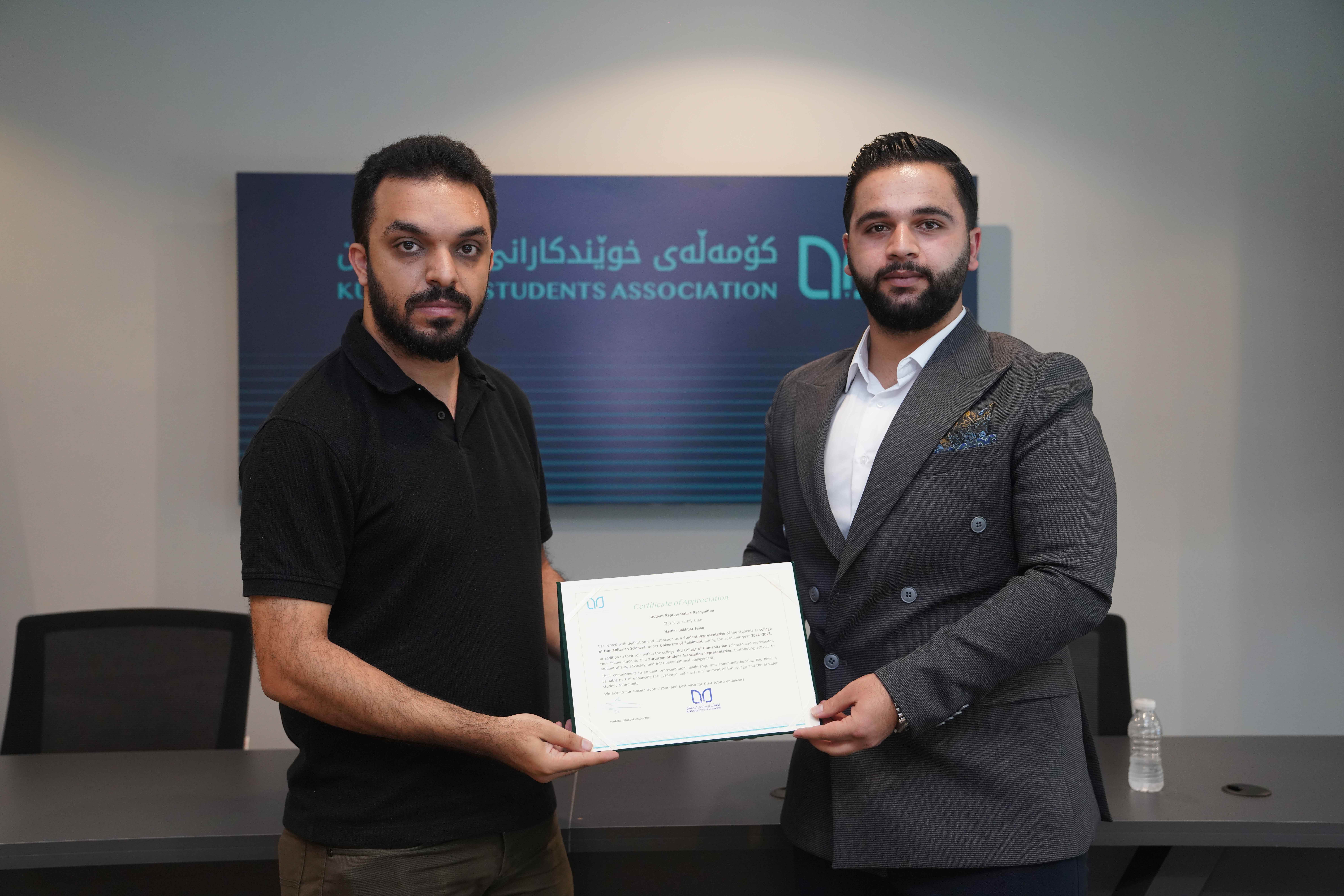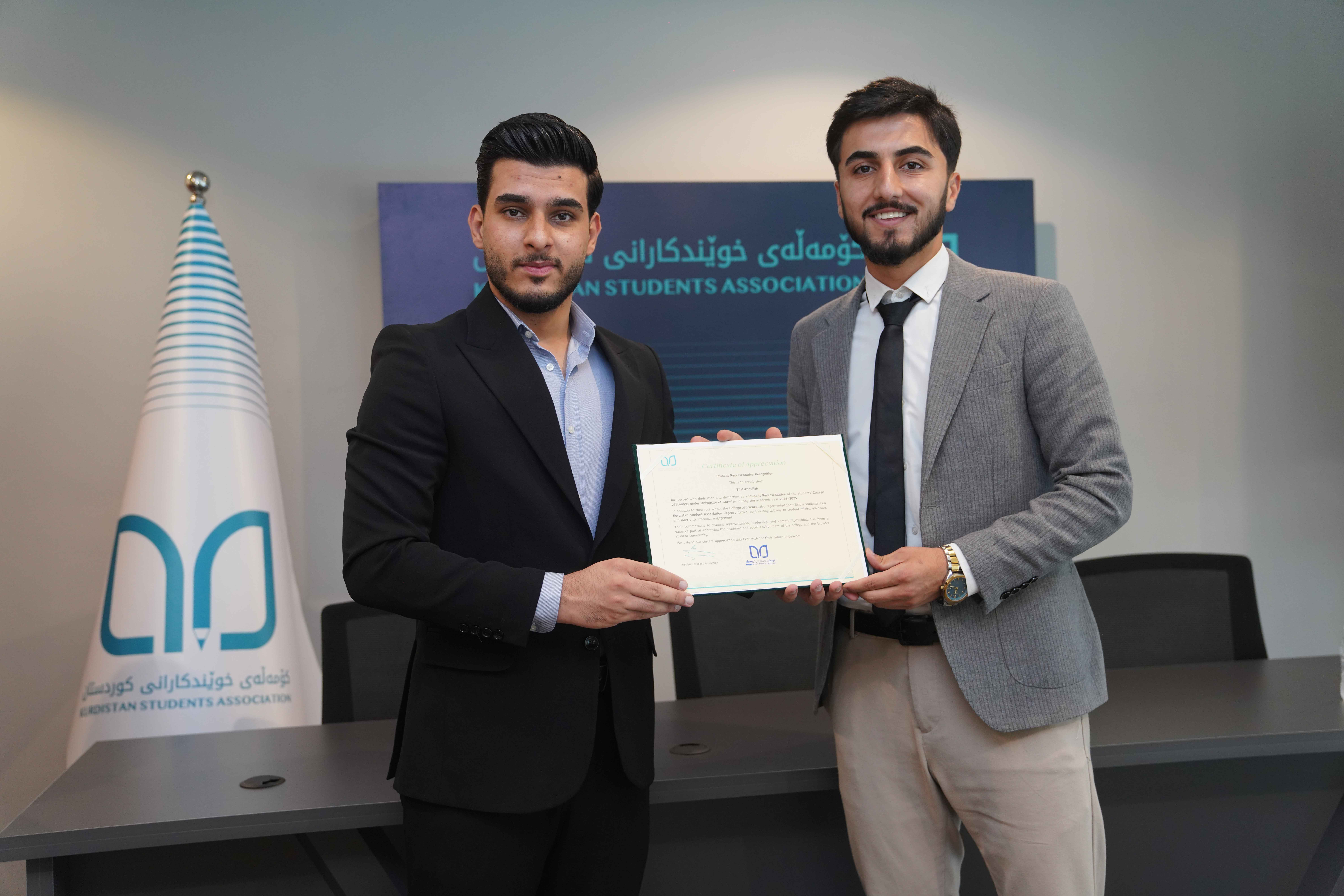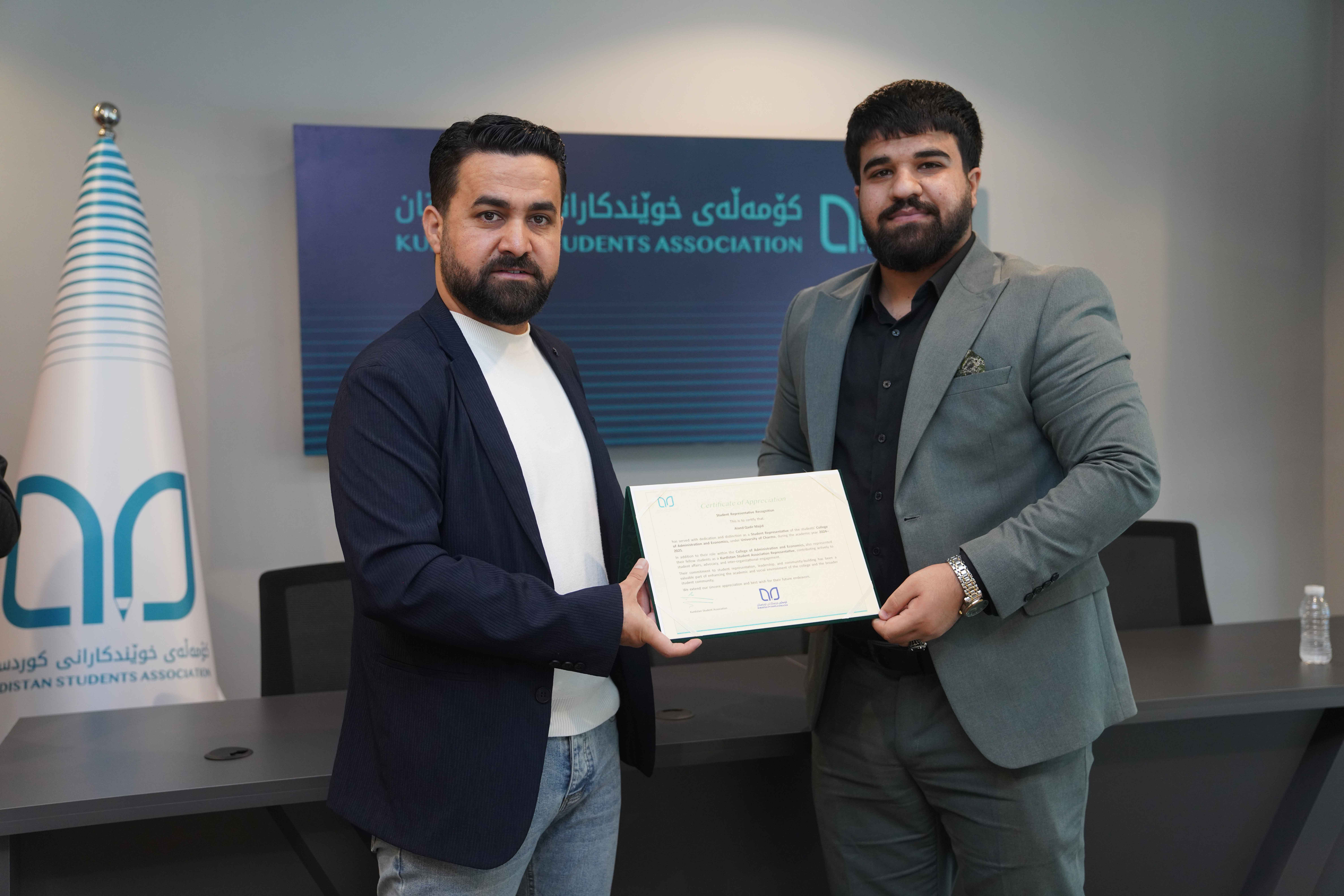نوێنەرانی گشتی کۆلێجی بەشێک لە زانکۆکان، لە بینای کۆمەڵەی خوێندکارانی کوردستان سوپاس و پێزانینیان ئاڕاستە کرا لە بەرامبەر خزمەت و بەدەنگەوە هاتنی كاروبارەكانی خوێندكاران لە زانكۆكانی خۆیاندا و ئەنجامدانی كاروچالاكییەكان لە ساڵی ڕابردوودا، دوای کۆبوونەوە و گوێگرتن لە داواکانیان، خەڵاتکران.