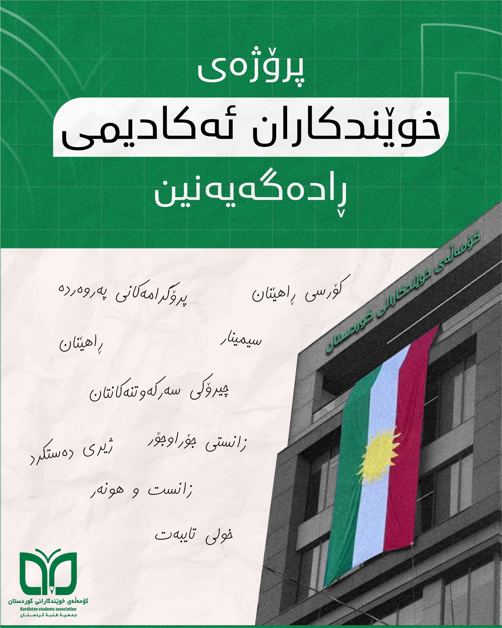 As part of its ongoing initiatives to serve Kurdish students, the Kurdistan Student Association is proud to announce a major new project titled"Student Academic"from its headquarters.
