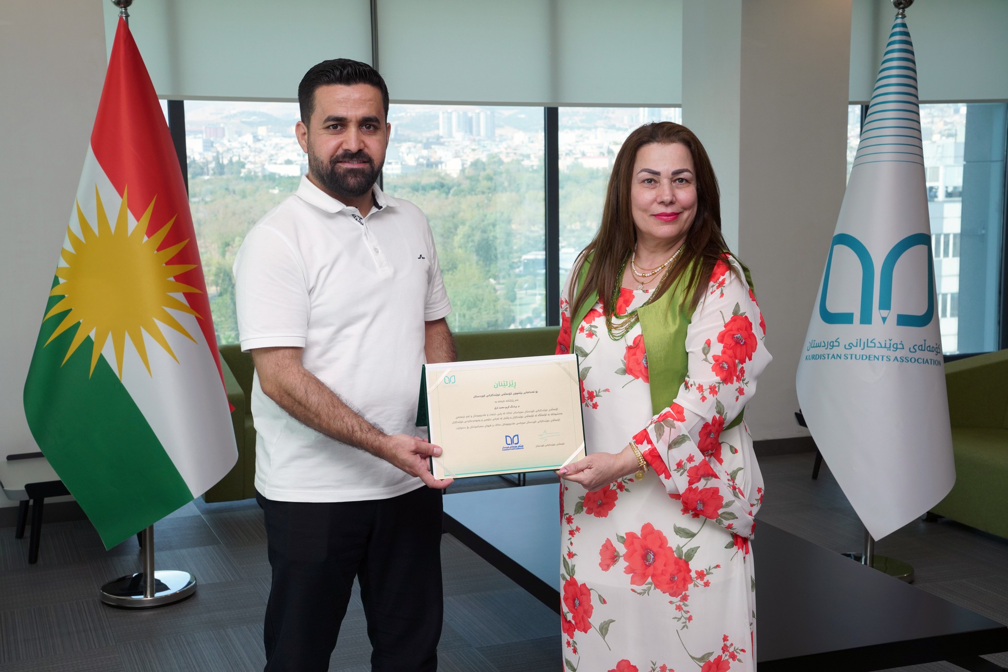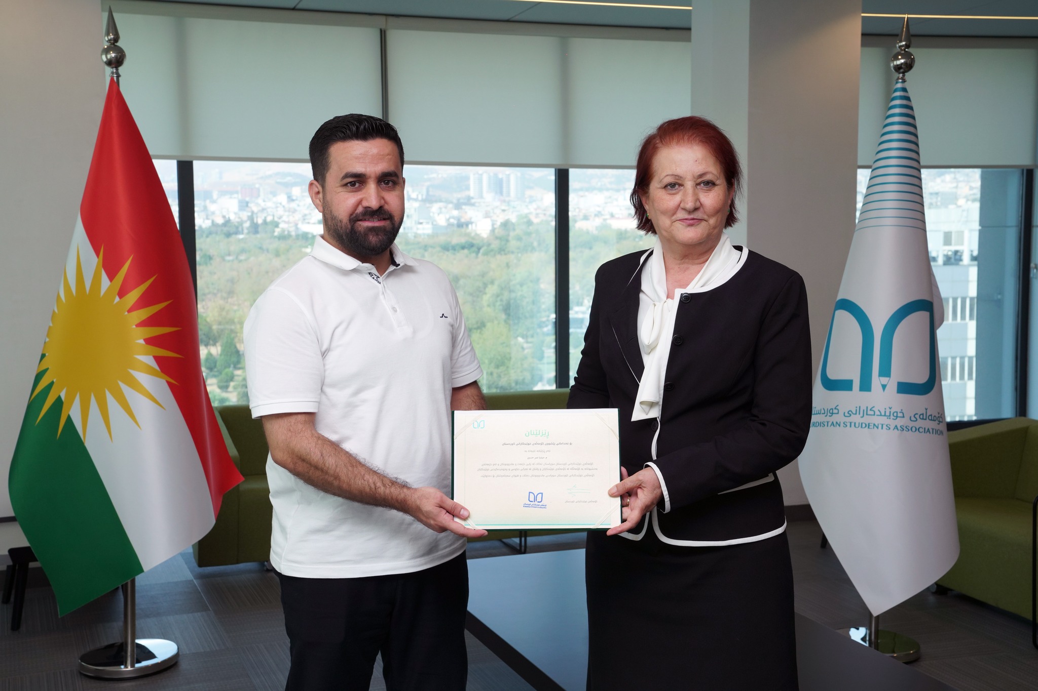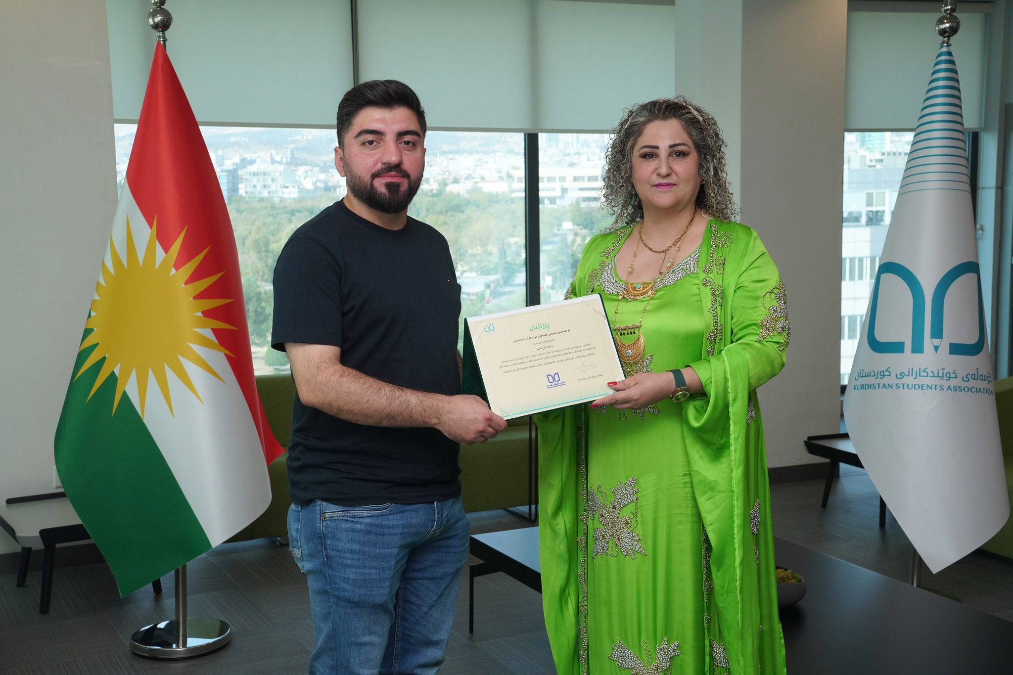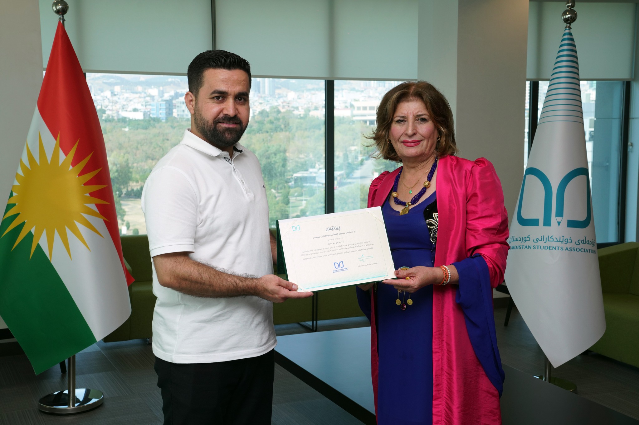 KurdSat Bestows Honor Upon Bafel Jalal Talabani's Representative for Student Affairs...