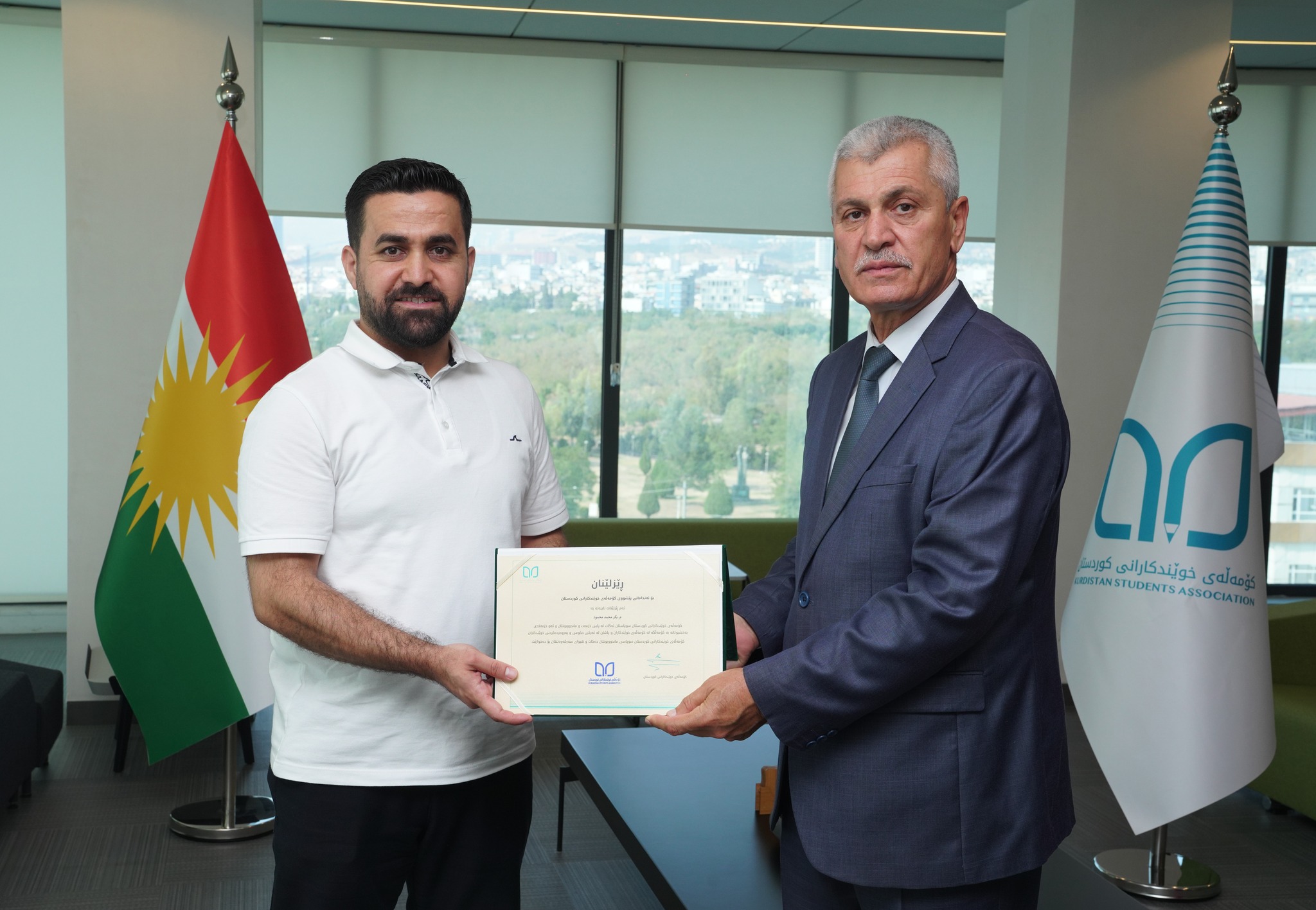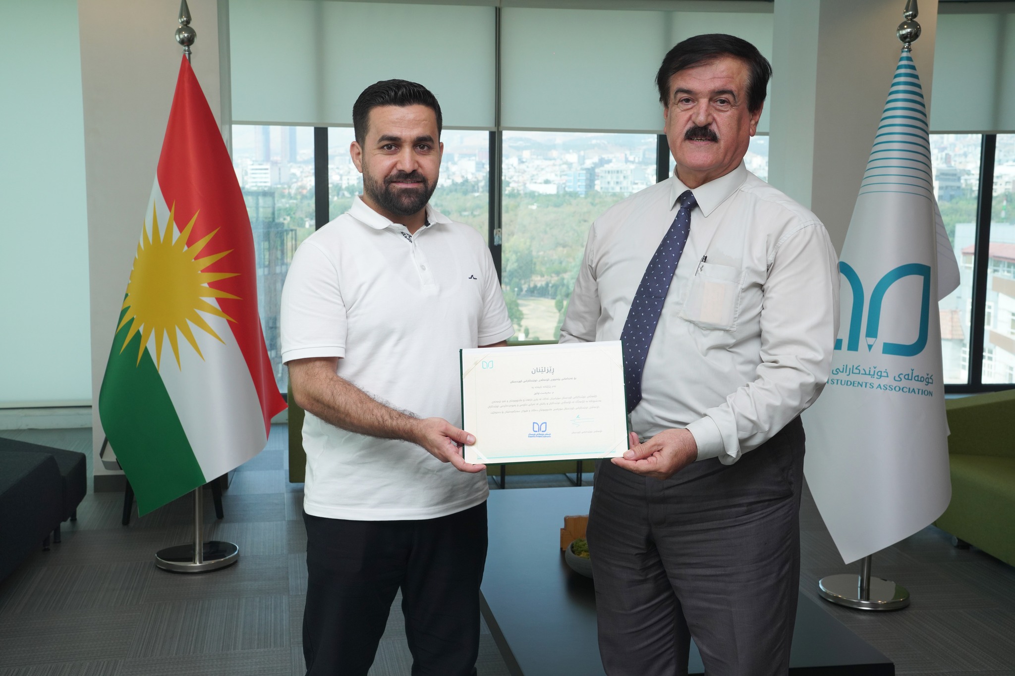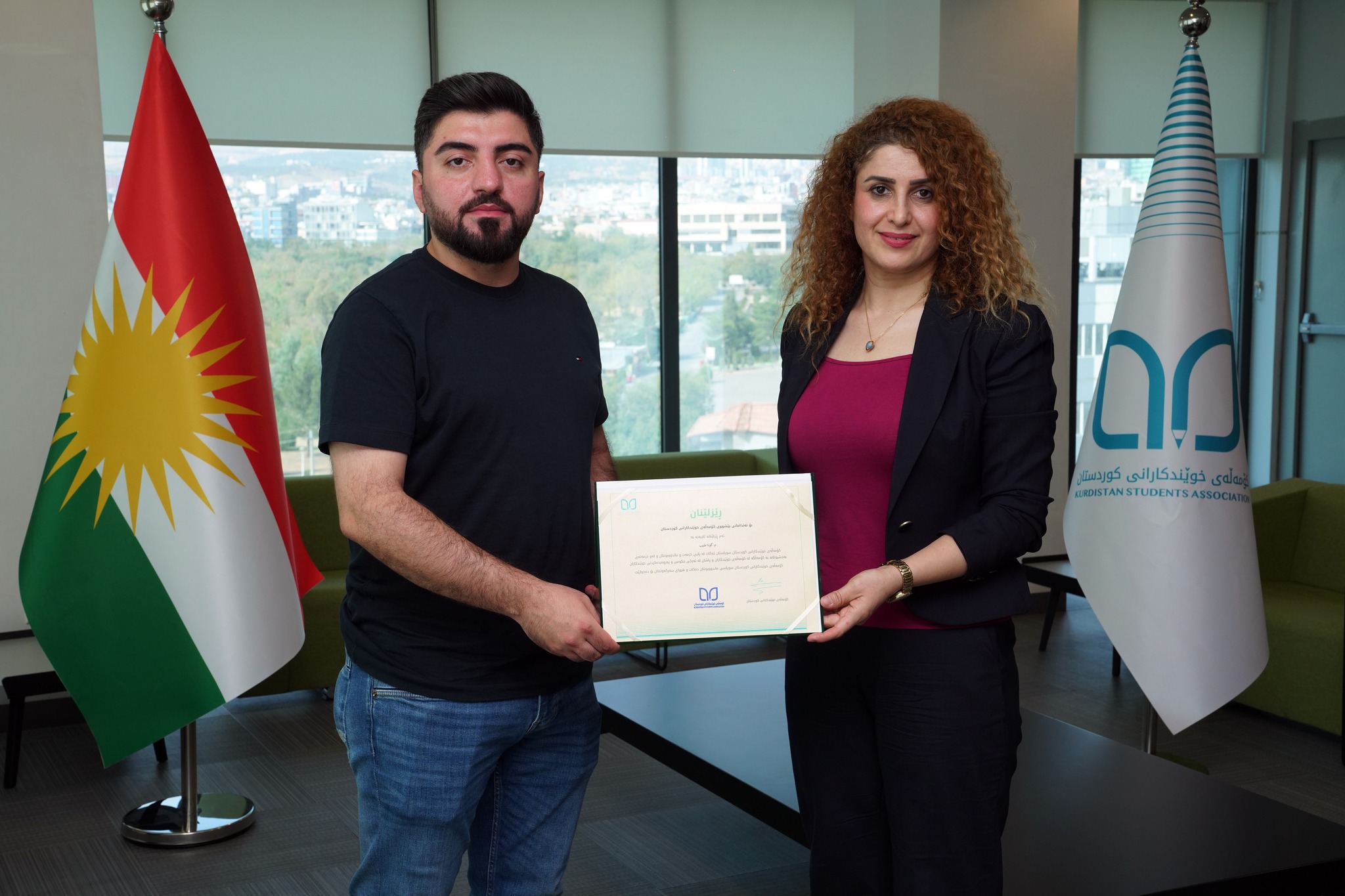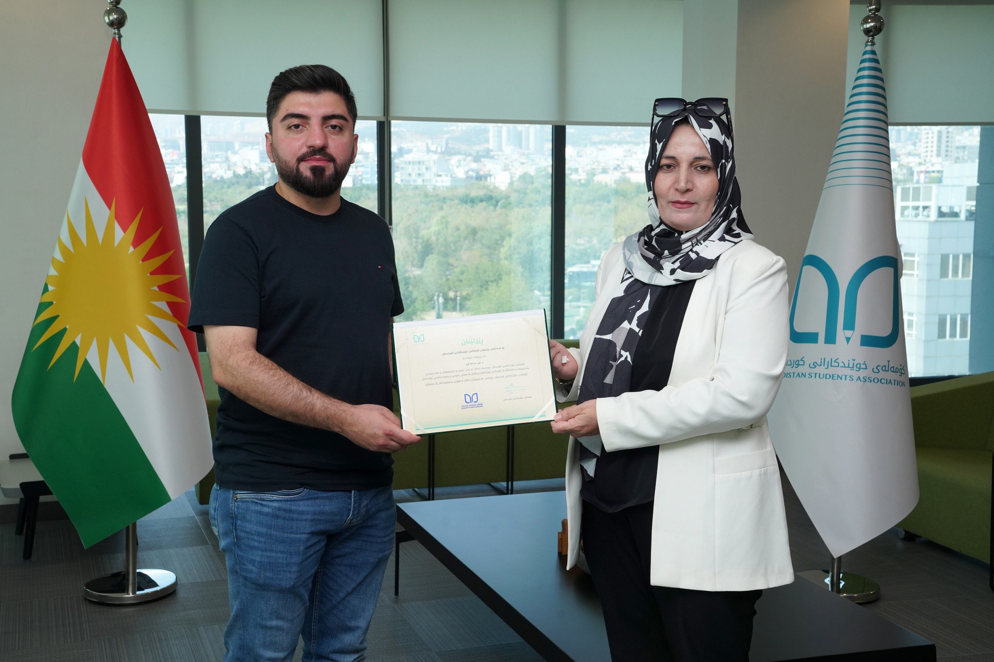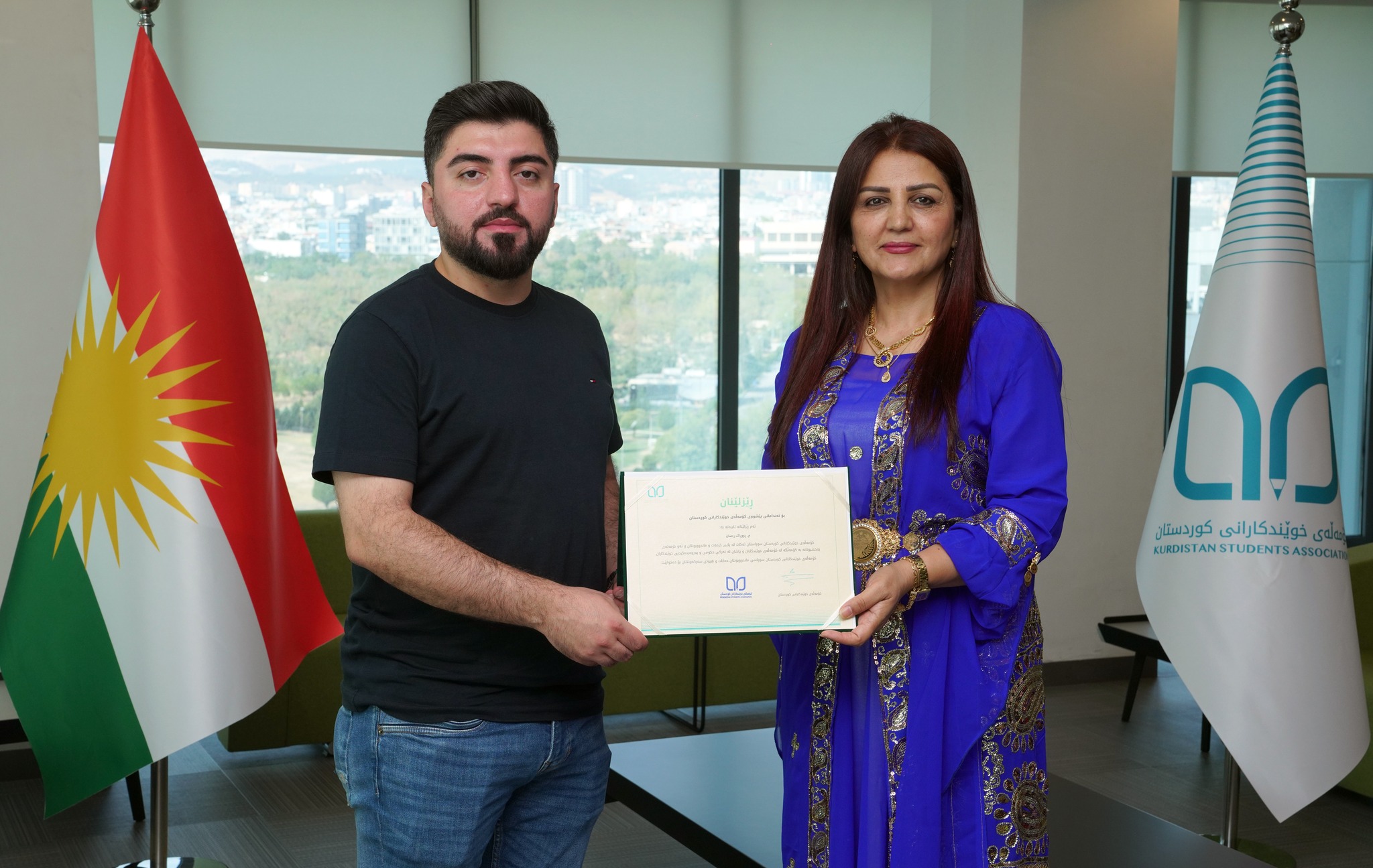 KurdSat Bestows Honor Upon Bafel Jalal Talabani's Representative for Student Affairs...
