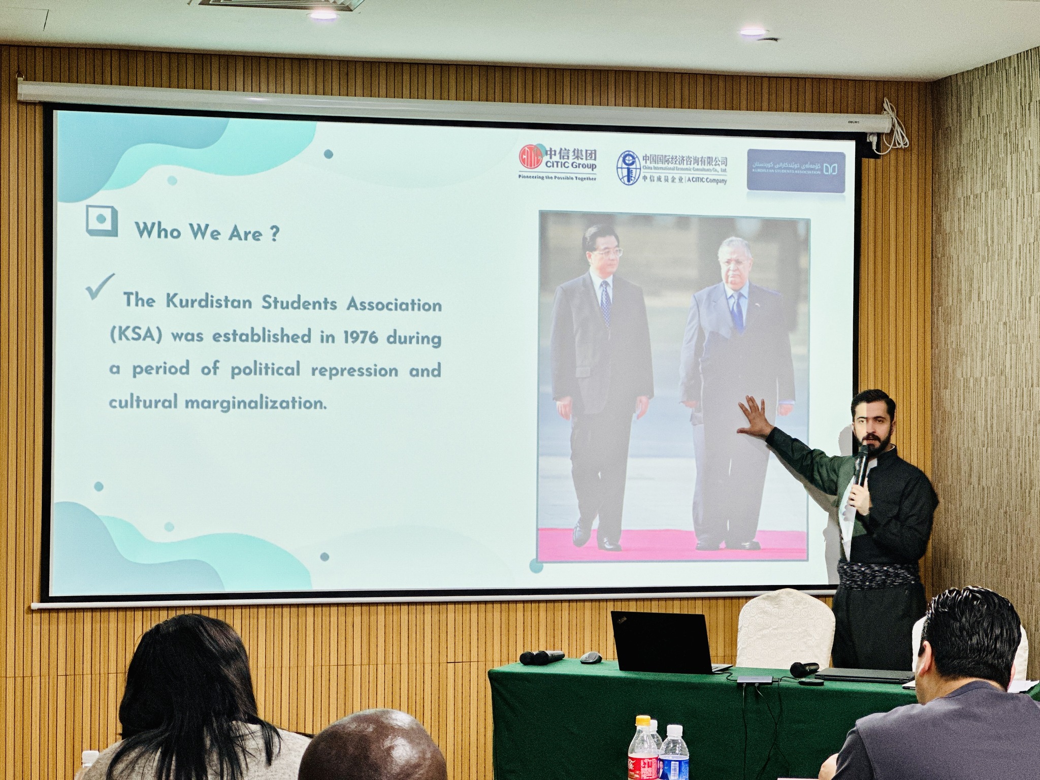 Two representatives from the Kurdistan Students' Association have participated in an important program in China. Their purpose was to explain the organization's role in the development of students.